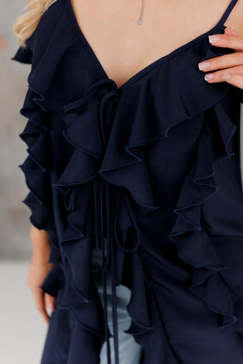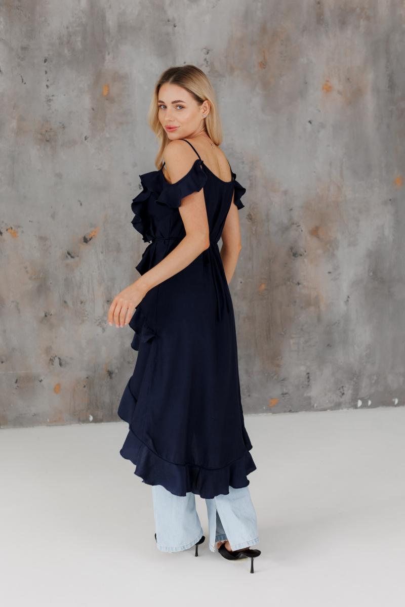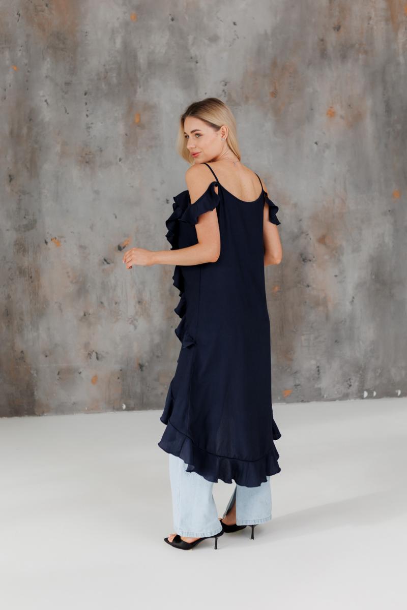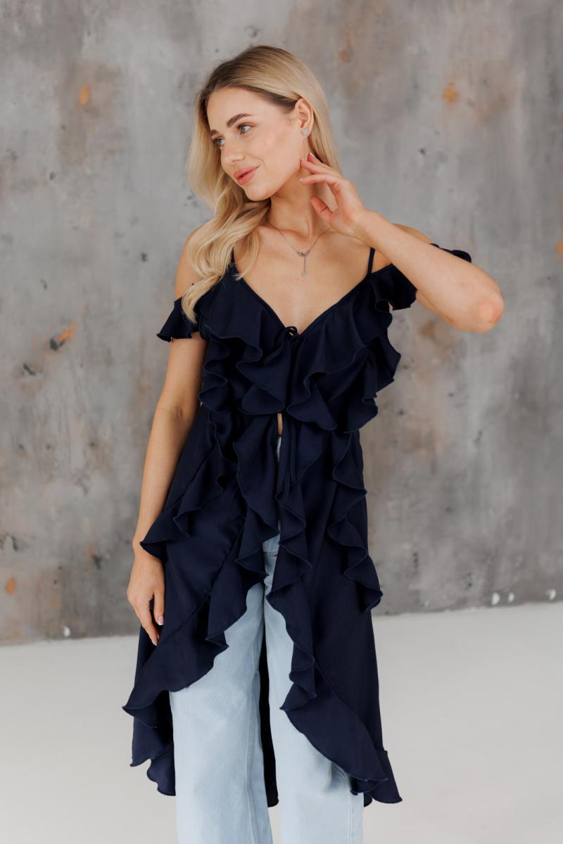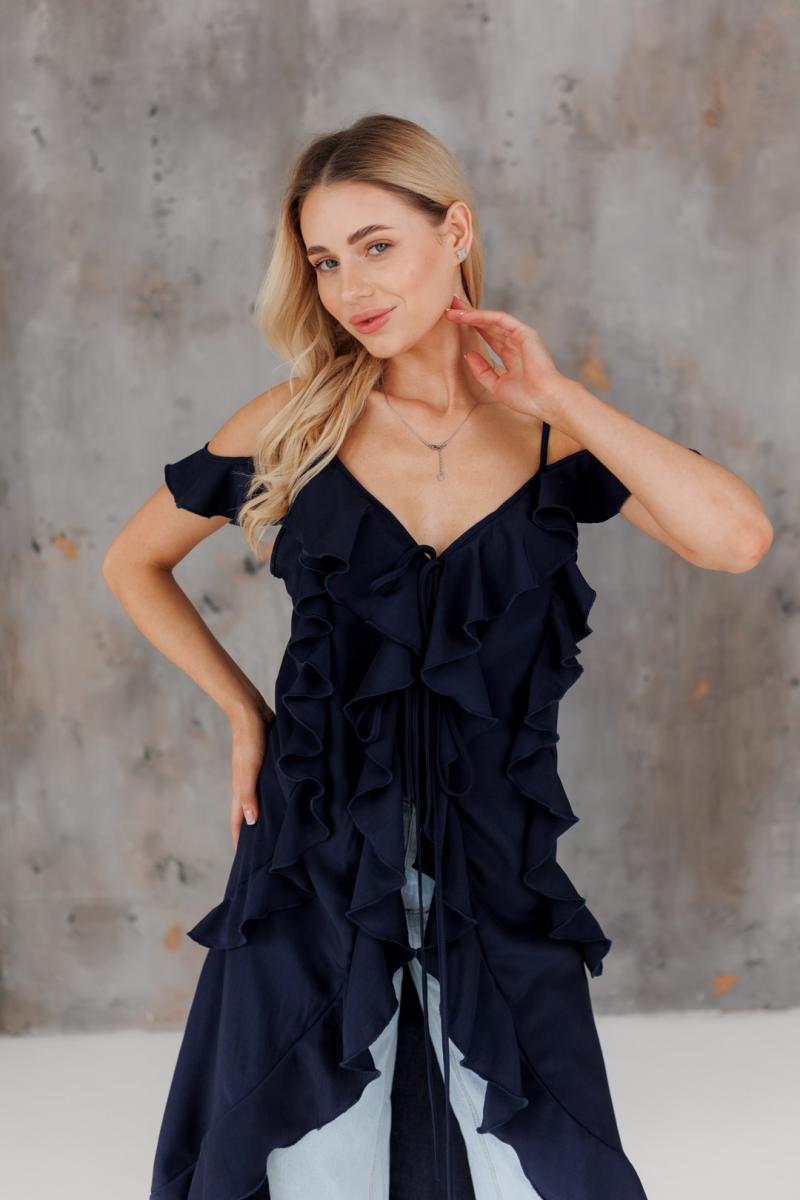 Блузка с воланами длинная синяя