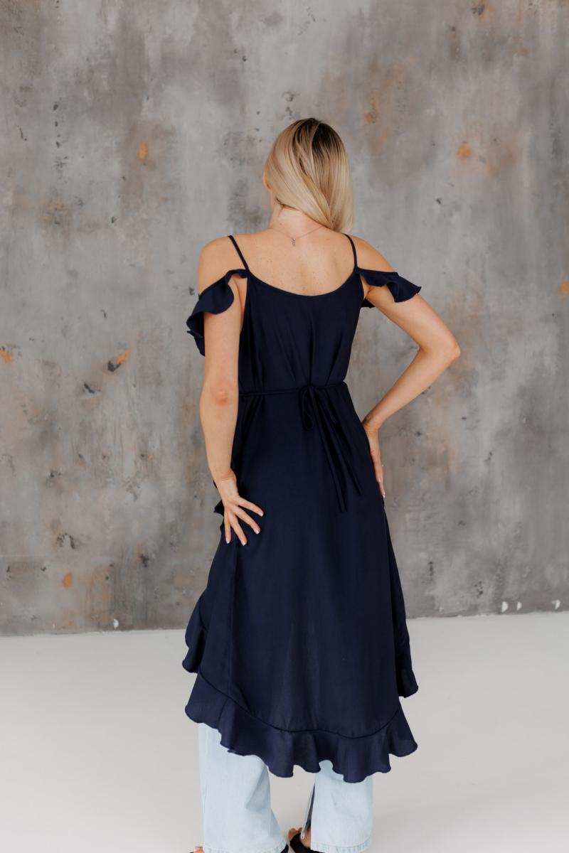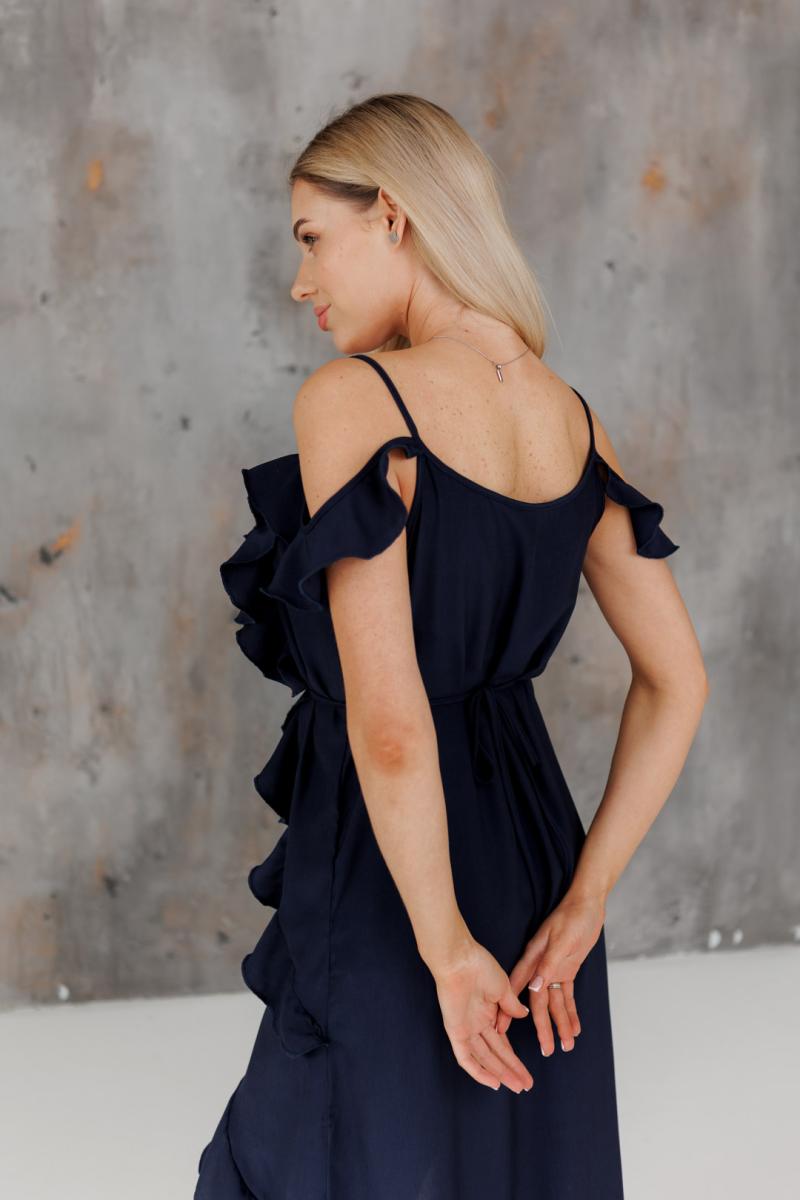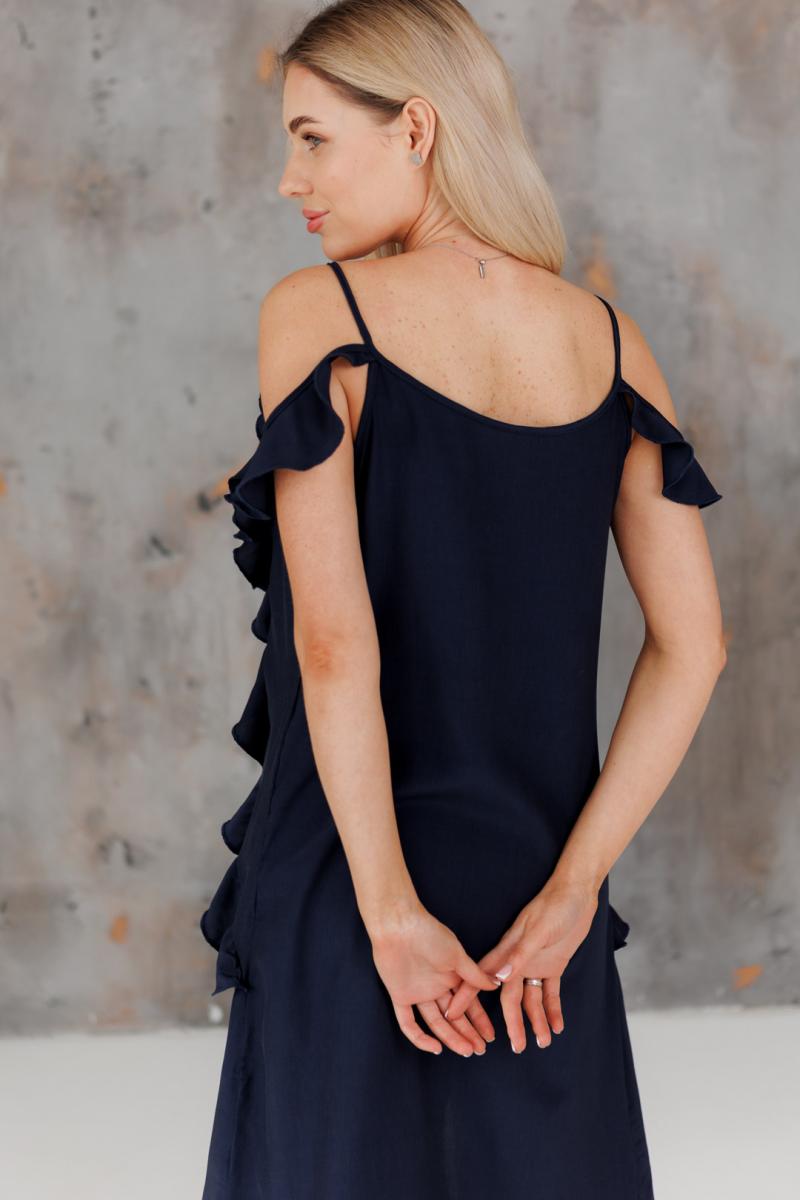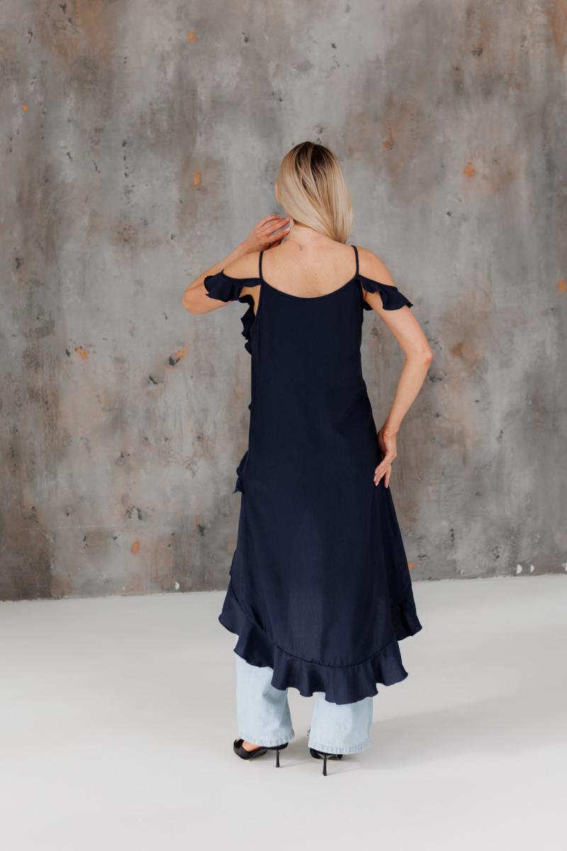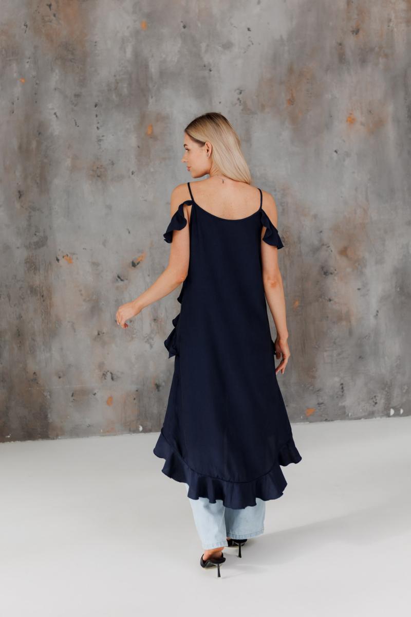 Блузка с воланами длинная синяя