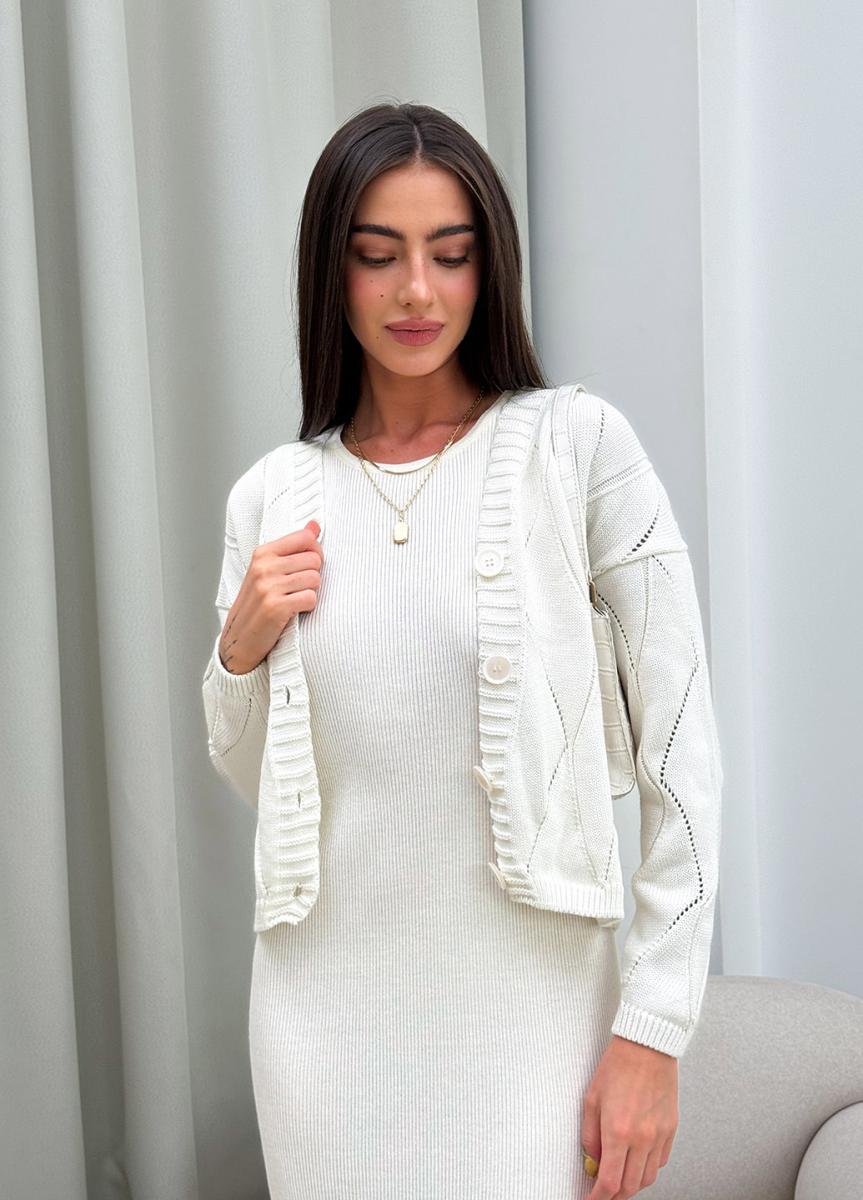 Кардиган женский ажурный молочный