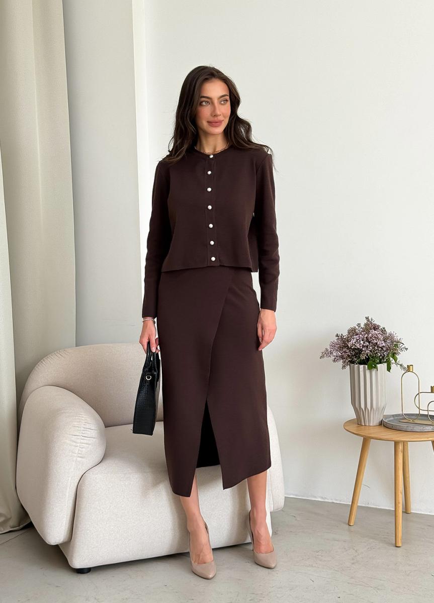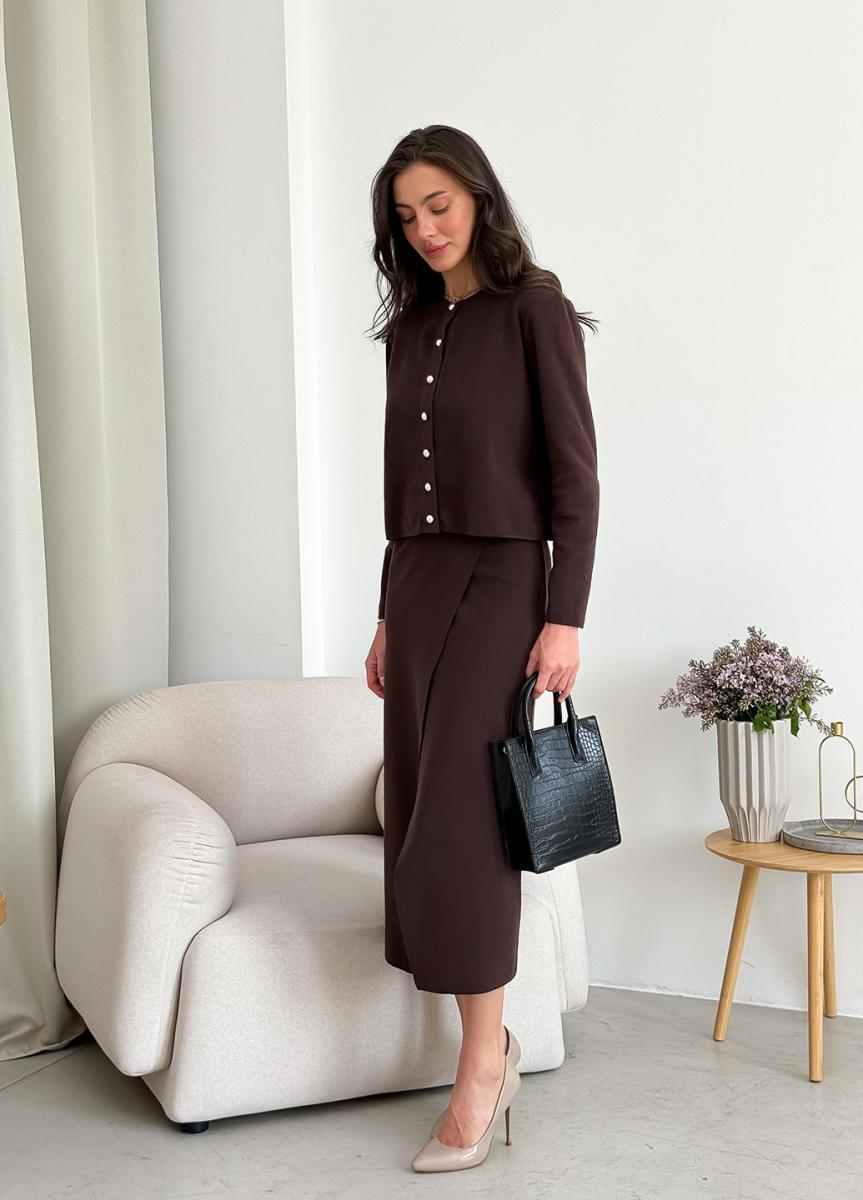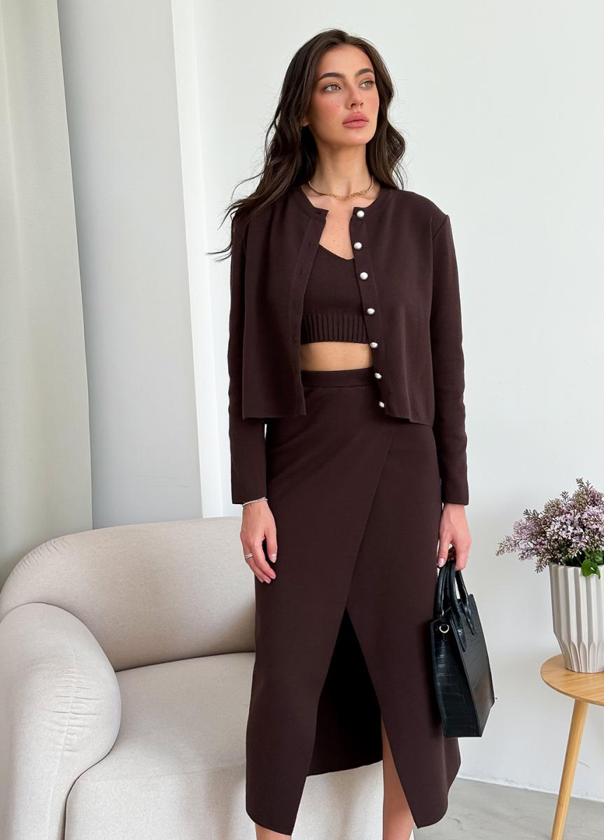 Кардиган сочетается с укороченным топам и юбкой коллекций Kayla.