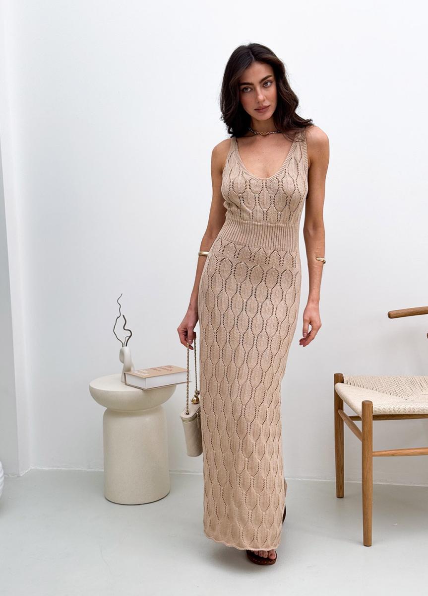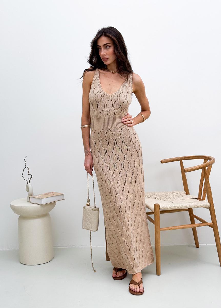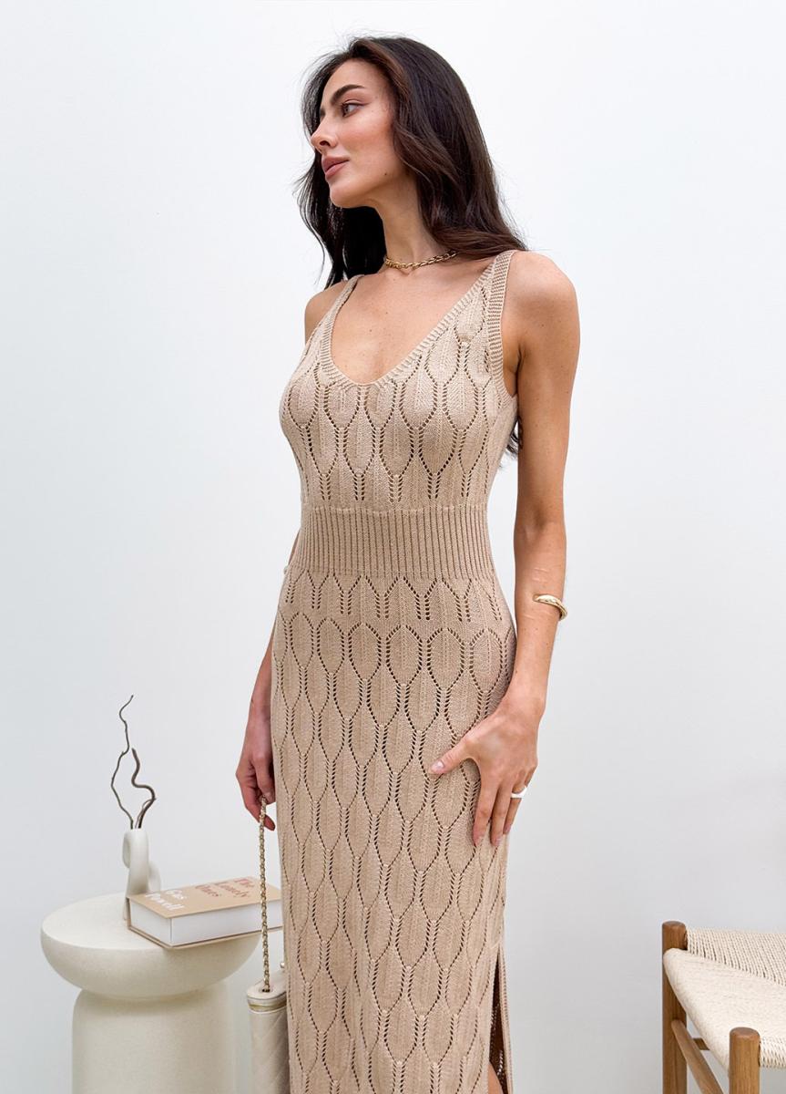 Купити ажурну літню сукню довгу бежеву Шикарна ажурна в'язана сукня, унікальний дизайн. Розмір: S/M, L/XL. Склад: 50% бавовна, 50% акрил. Підкресліть свою індивідуальність у нашій...