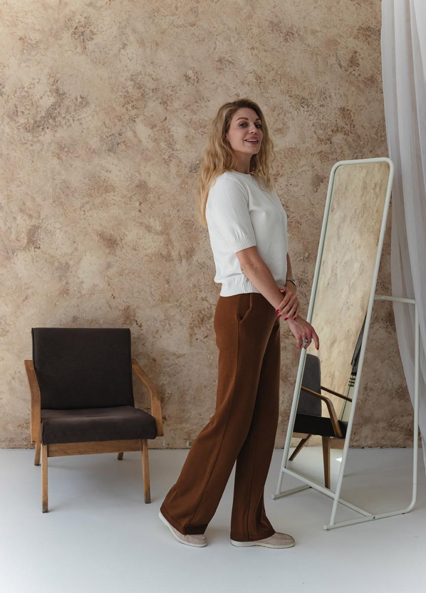 Брючний костюм з футболкою молочно-коричневий
