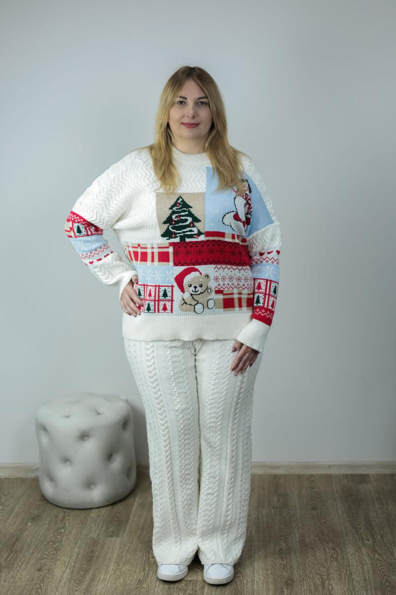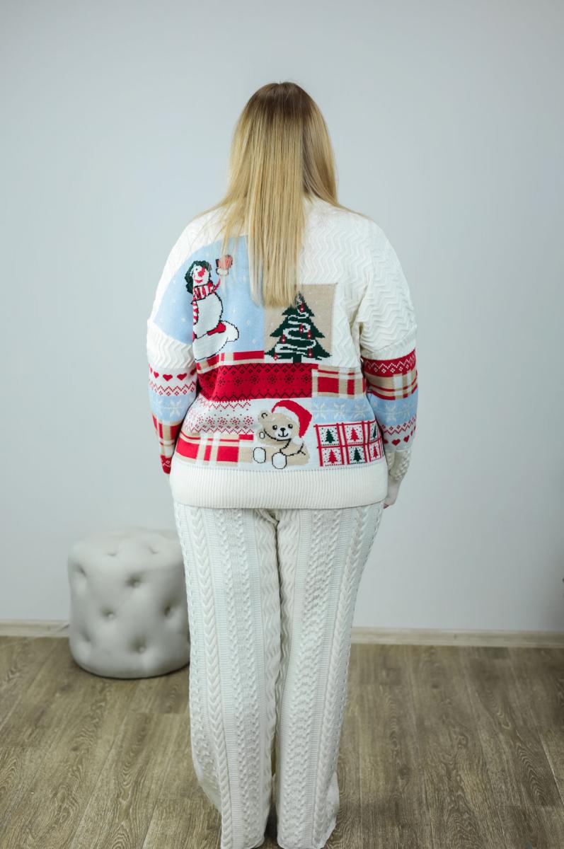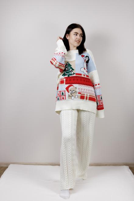Жіночі штани вільного крою машинної в'язки. Новорічні в'язані брюки з візерунком стануть чудовим доповненням до образу у святковий вечір. Для доповнення новорічного образу радимо придбати. Новорічний джемпер з візерунком!