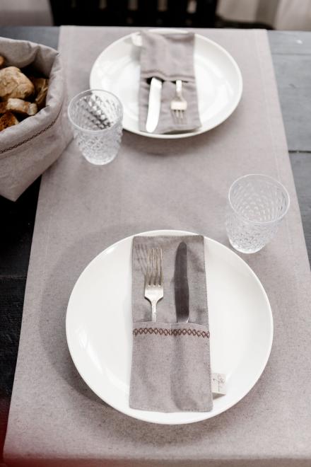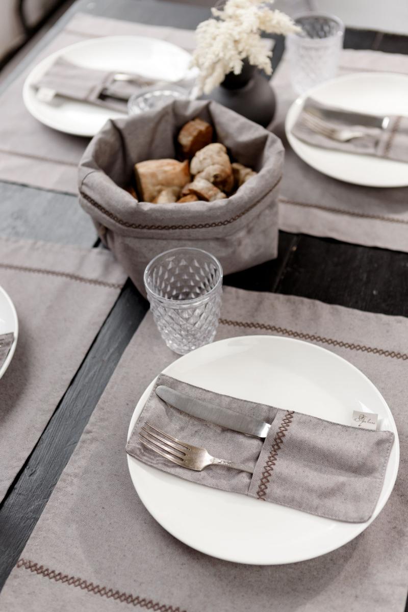 Додатково пропонуємо замовити подушку на стілець, прихватку, рукавичку, а також скатертину та серветки, доріжку на стіл з колекції RINO.