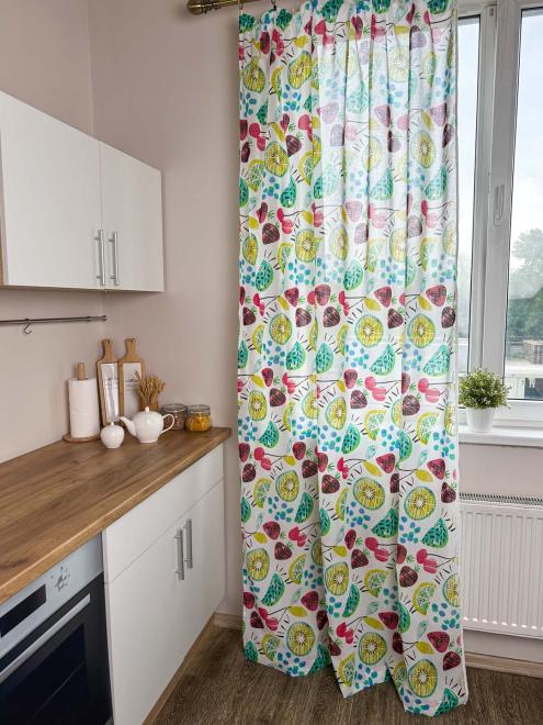 Гардина на шторній стрічці від ТМ Прованс з підхватом, виготовлена з якісної іспанської тканини. Готовий тюль чудово прикрасить та доповнить інтер'єр вашого будинку. Гардина напівпрозора. У колекції Ви зможете вибрати весь кухонний текстиль: скатері та серветки, подушки на стільці, прихватки та інший кухонний текстиль.