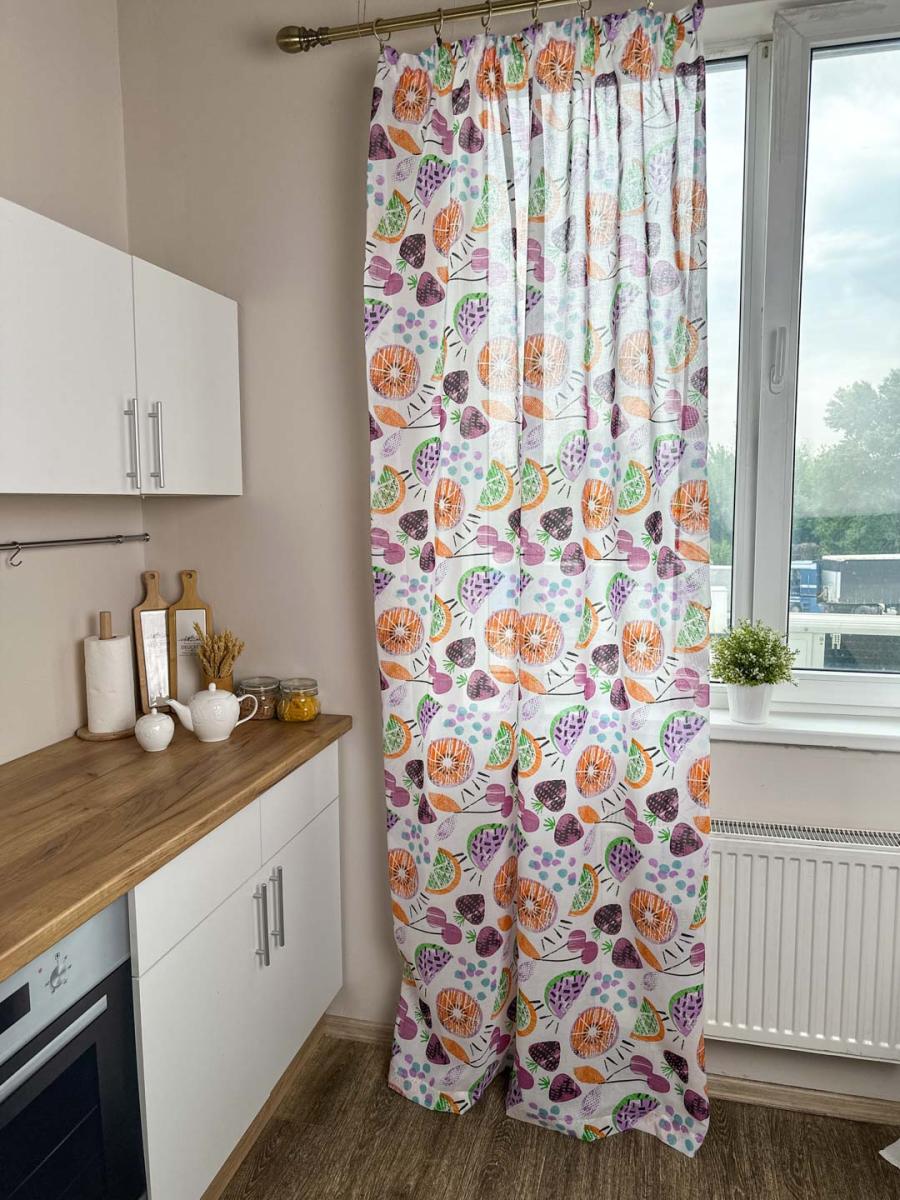 Гардина на шторній стрічці від ТМ Прованс з підхватом, виготовлена з якісної іспанської тканини. Готова гардина чудово прикрасить та доповнить інтер'єр вашого будинку. Гардина напівпрозора. У колекції Ви зможете вибрати весь кухонний текстиль: скатері та серветки, подушки на стільці, прихватки та інший кухонний текстиль.