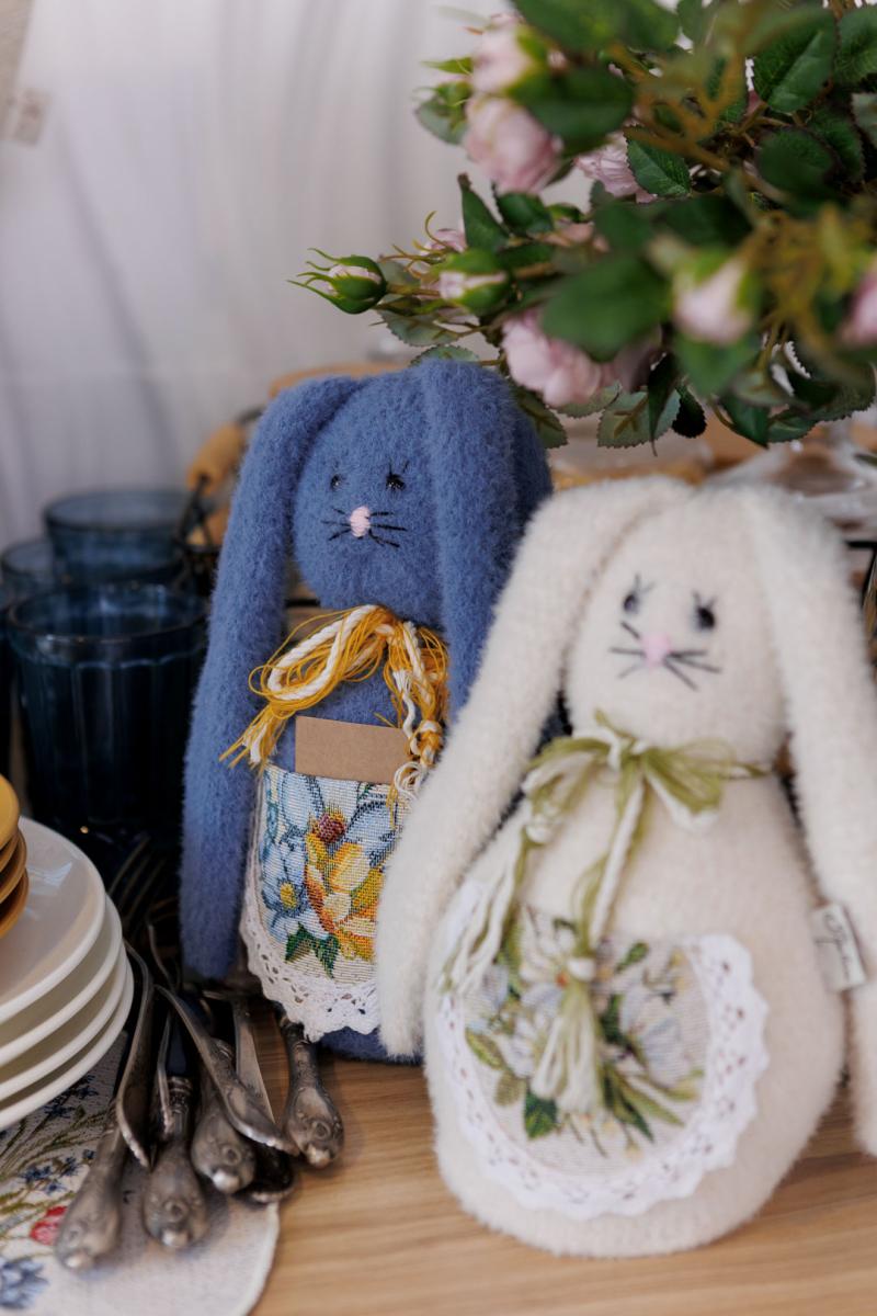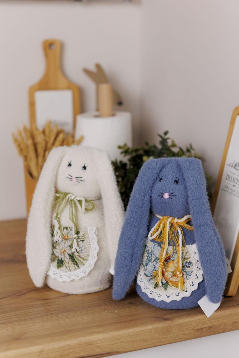Інтер'єрний декоративний стопер Зайка пухнастий волошковий