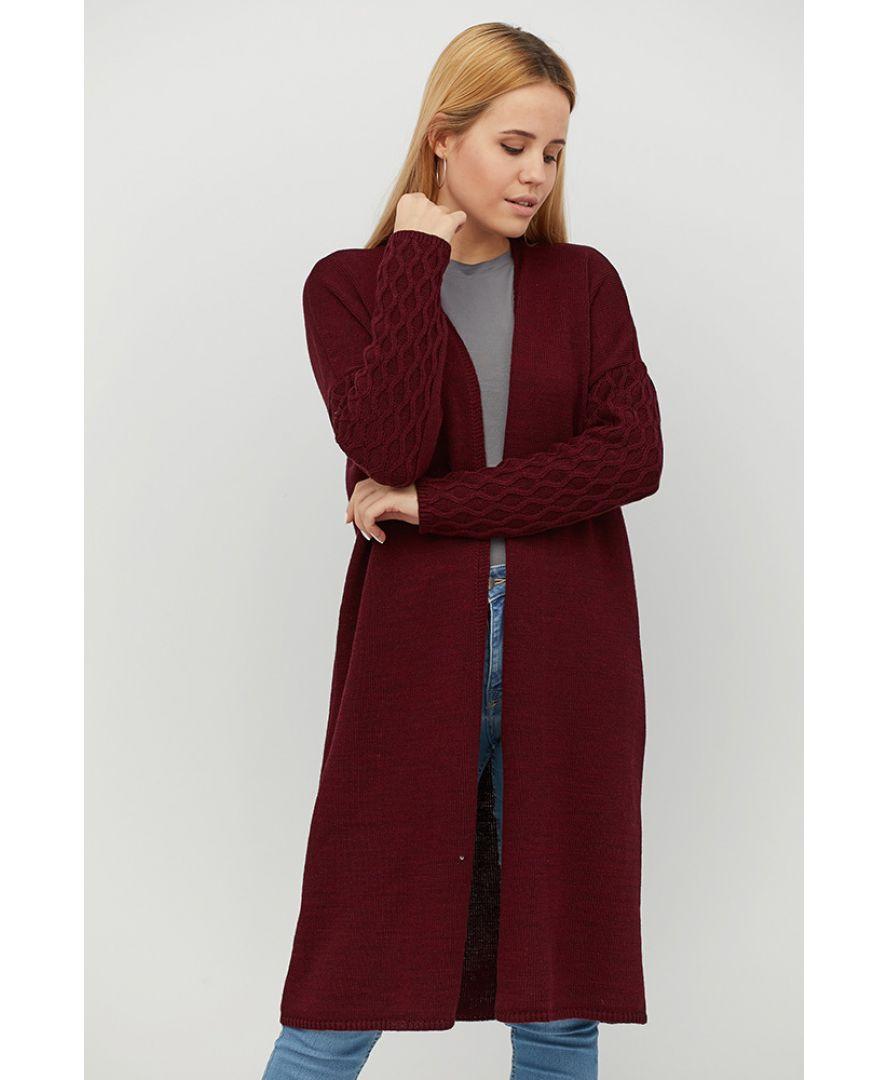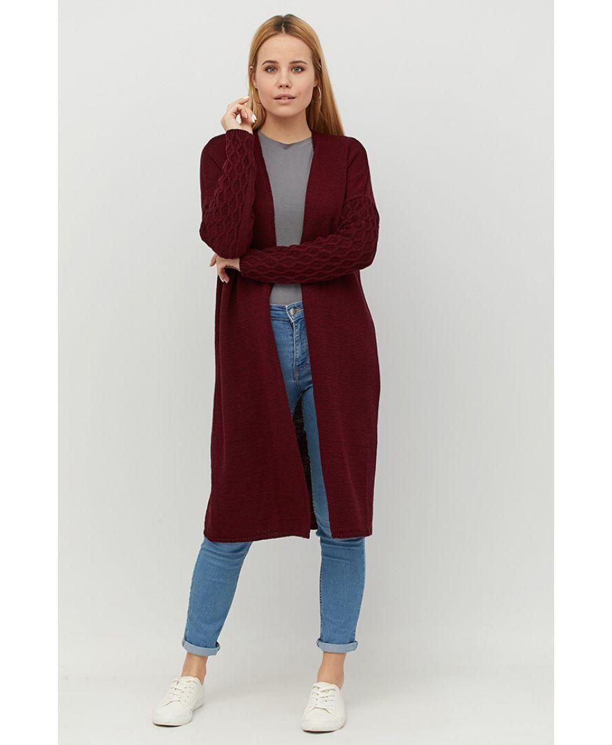 Купити кардиган в'язаний Марго бордо Кардиган жіночий красивого кольору з оригінальним рукавом в'язкою в коси . Платье пов'язаний з...