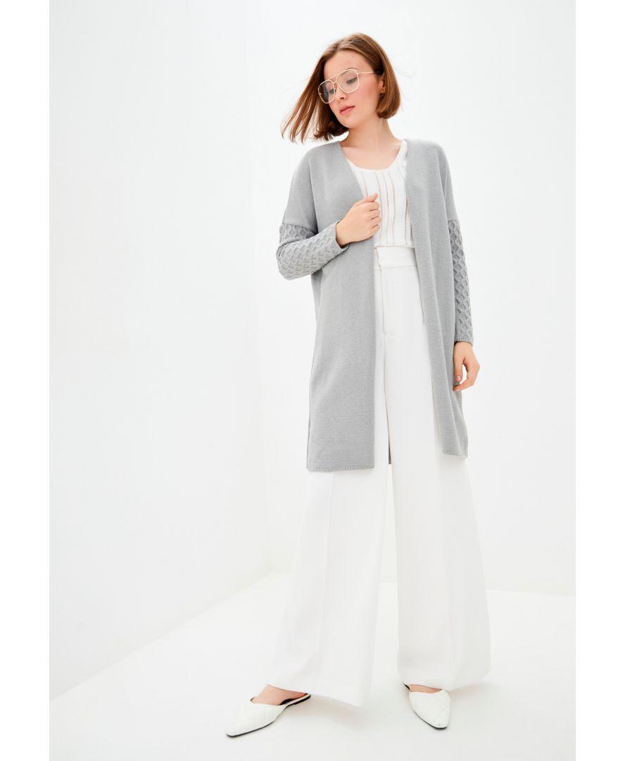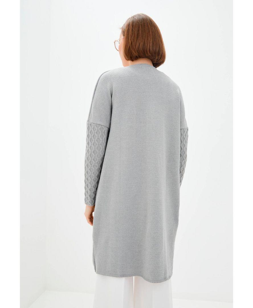 Платье пов'язаний з напіввовняної пряжі без пояса. Кардиган можна носити як з джинсами так і з брюками зі спідницями і сукнями, формуючи кожен раз новий образ.