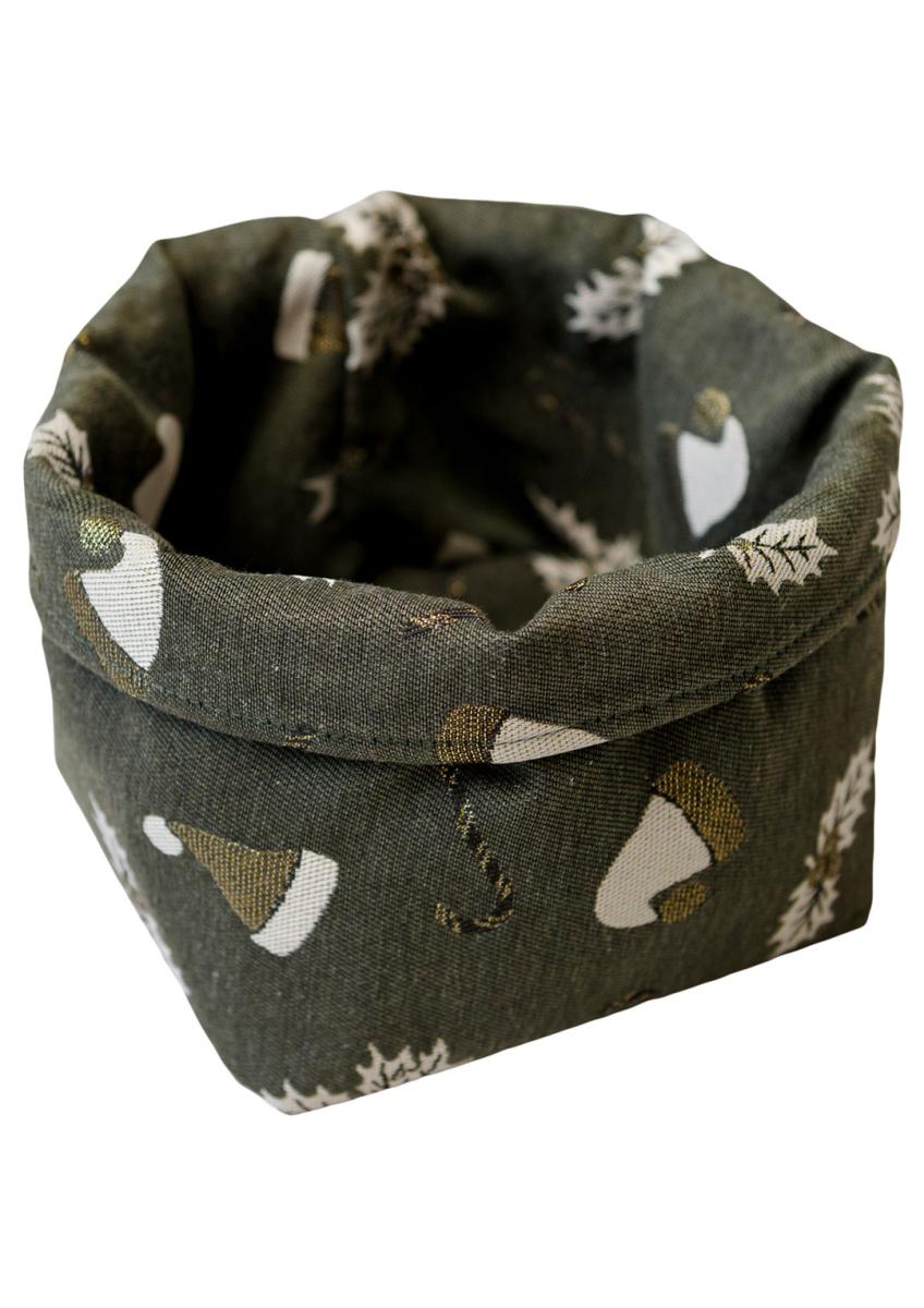 Купити кошик для зберігання Шапочки на зеленому Чудово доповнить інтер'єр вашого будинку. Виготовлений із високоякісної іспанської тканини Розмір: 18х18см, висота 14см Склад тканини: 30% бавовна, 65% поліестер, 5% люрекс Замовити декоративний кошик для зберігання Шапочки на зеленому Додатково пропонуємо замовити інші елементи декору з колекції Шапочки та Дзвіночки. Швидка доставка!