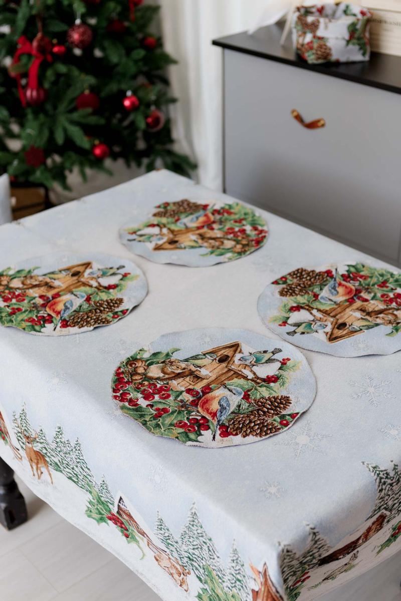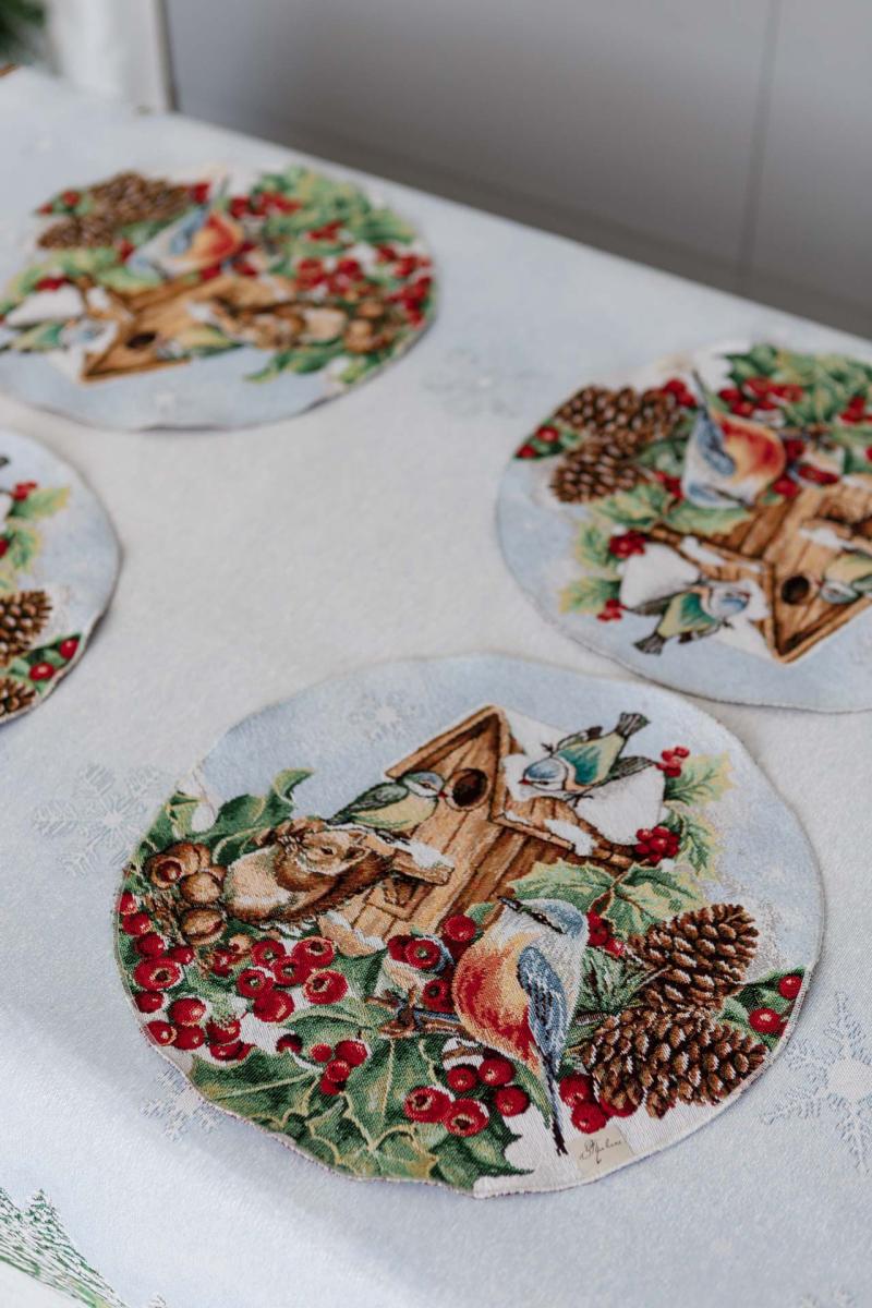 Кругла гобеленова новорічна серветка Squirrel