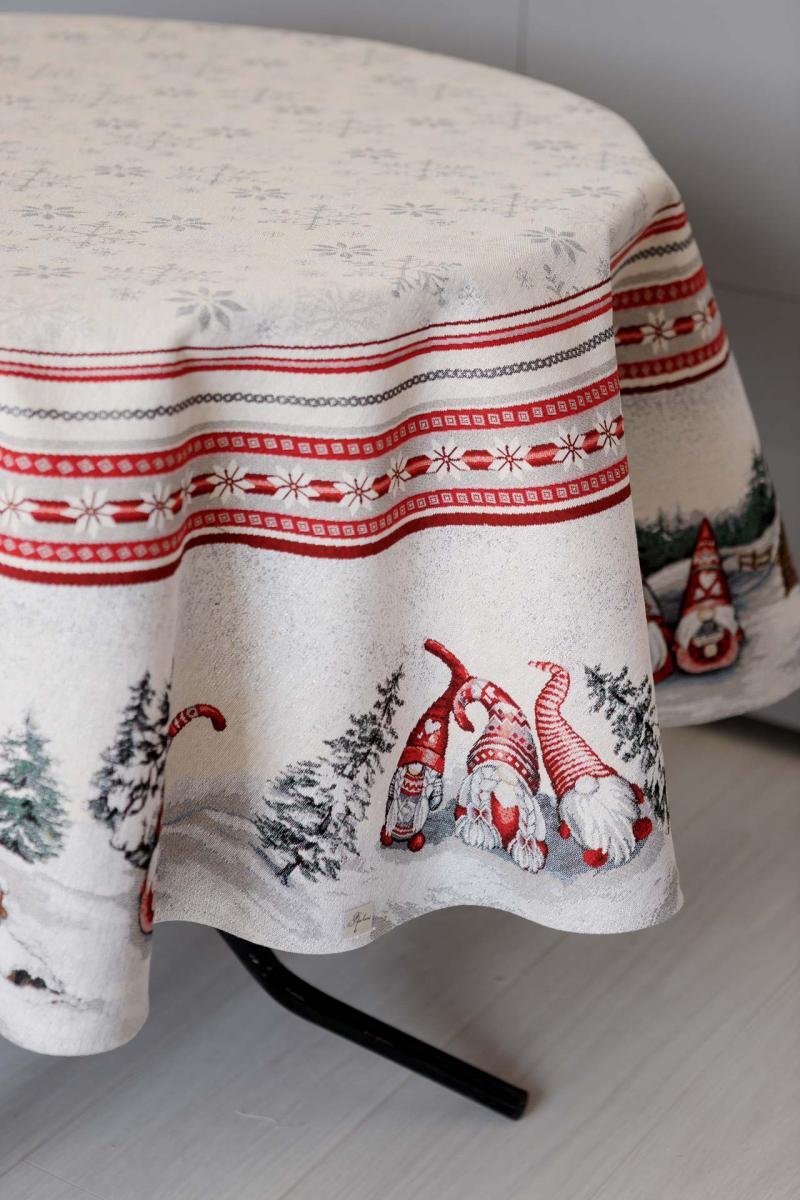 Кругла гобеленова скатертина новорічна Snowfall
