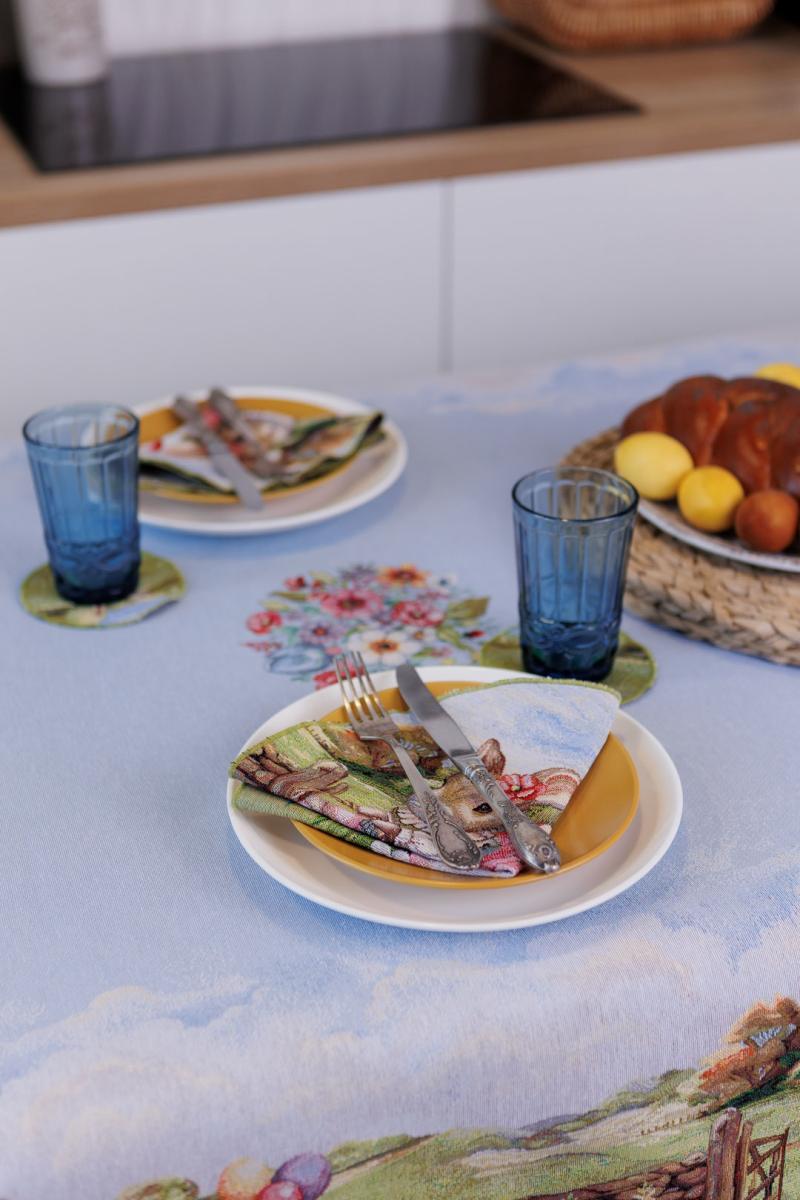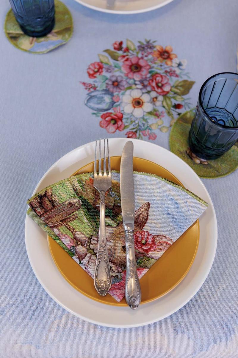 Серветка на стіл з гобеленової іспанської тканини. Це стильний подарунок сім'ї, друзям, родичам та колегам до весінніх свят. Також це прекрасне доповнення до скатертини, кошика, фартуха, доріжок, наволочок та подушок з весняної колекції Настрій