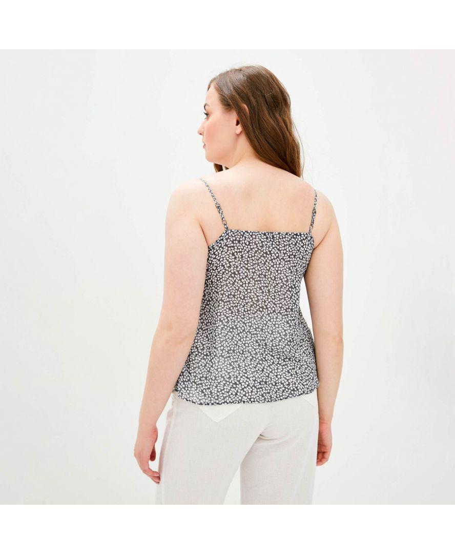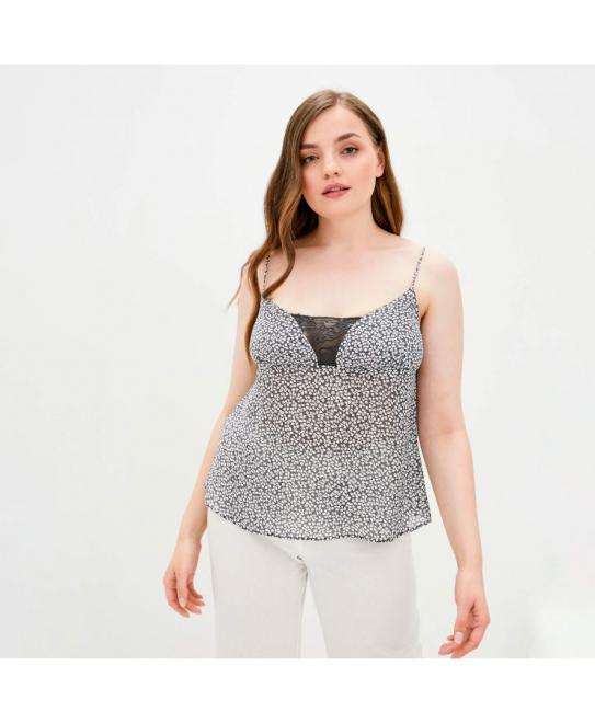 Майка жіноча на бретелях чорна з білим квіточкою Т