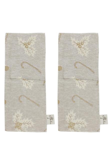 Сервірувальний набір чохлів для приборів потрібна річ на святковому столі. У набір входять: два чохла для приборів розміром 24х10см. Чохли чудово поєднуються з іншим текстилем для кухні з колекції Шапочки та дзвіночки. Цей набір буде чудовим корпоративним подарунком або подарунком-компліментом до свята Нового Року! Склад тканини: 30% бавовна, 65% поліестер, 5% люрекс Виробництво: Україна