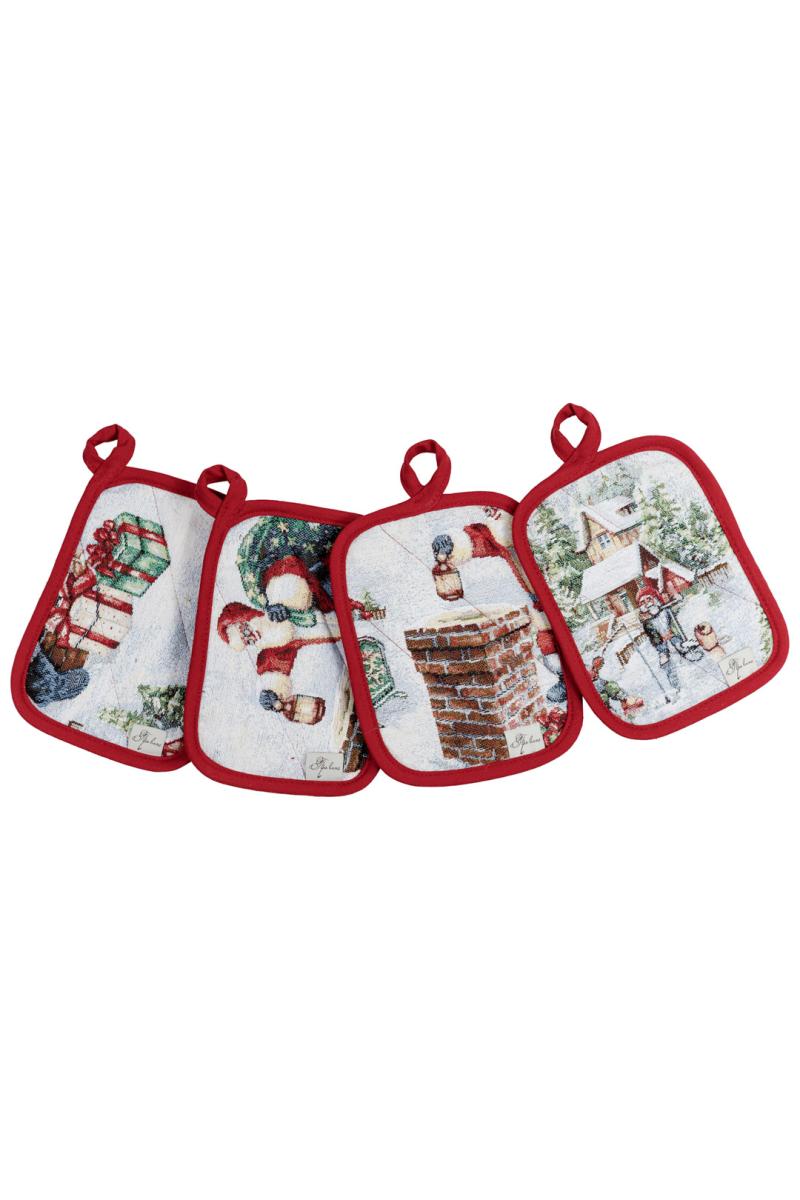 Набір новорічних гобеленових прихваток для кухні потрібна річ на кухні. У набір входять: дві прихватки розміром 15х20см, малюнок в асортіменті. Прихватки чудово поєднуються з іншим текстилем для кухні з колекції Снігова зима. Цей набір буде чудовим корпоративним подарунком або подарунком-компліментом до новорічних свят господиням!
