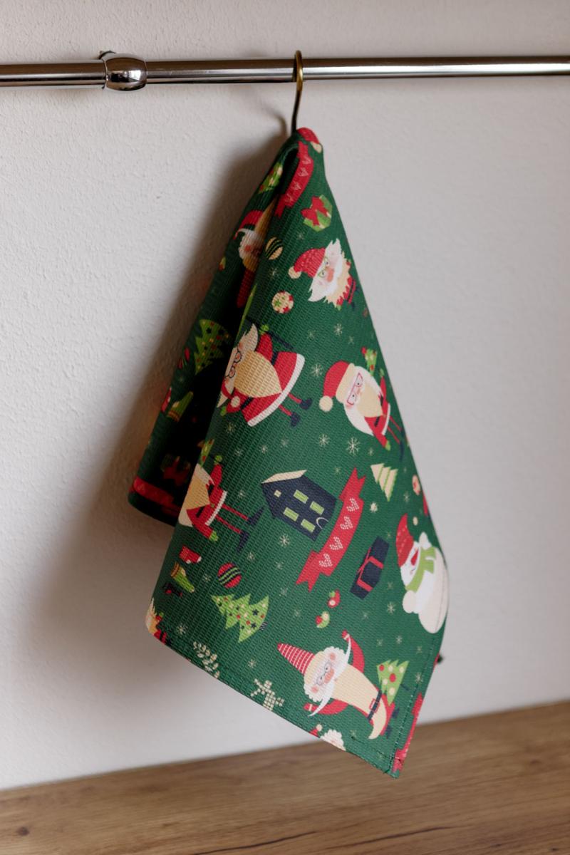 Набір новорічних рушників Санта на зеленому