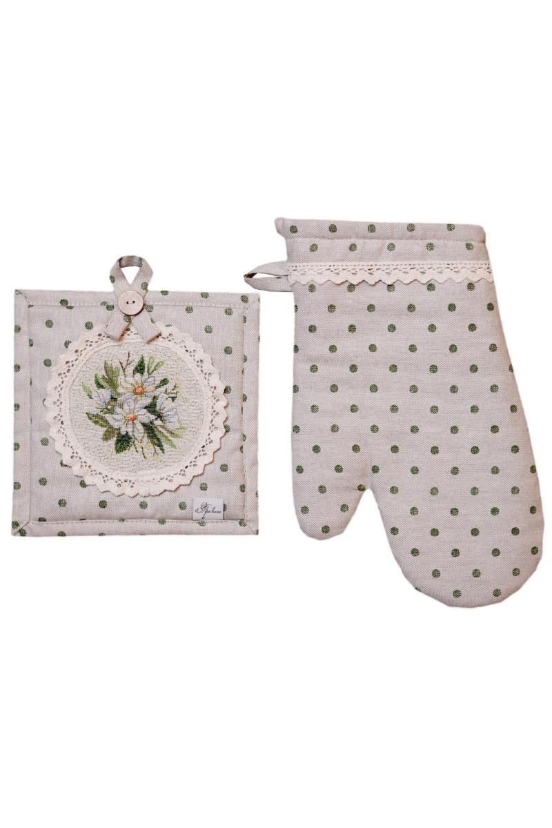 Купити набір рукавичка та прихватка Вінтаж зелені горошки