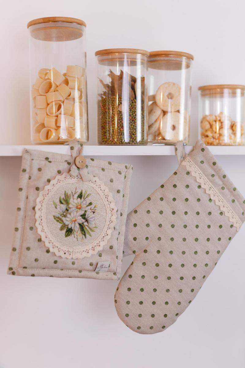 Набір рукавичка та прихватка Вінтаж зелені горошки