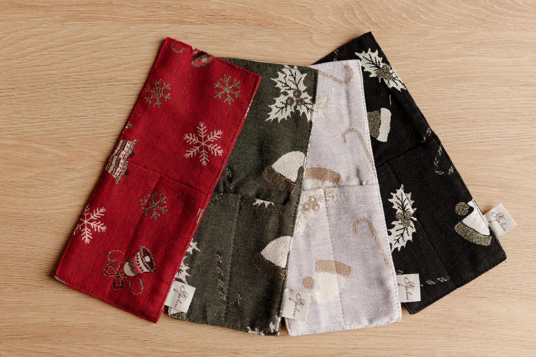 Новорічний чохол для столових приборів Шапочки на зеленому