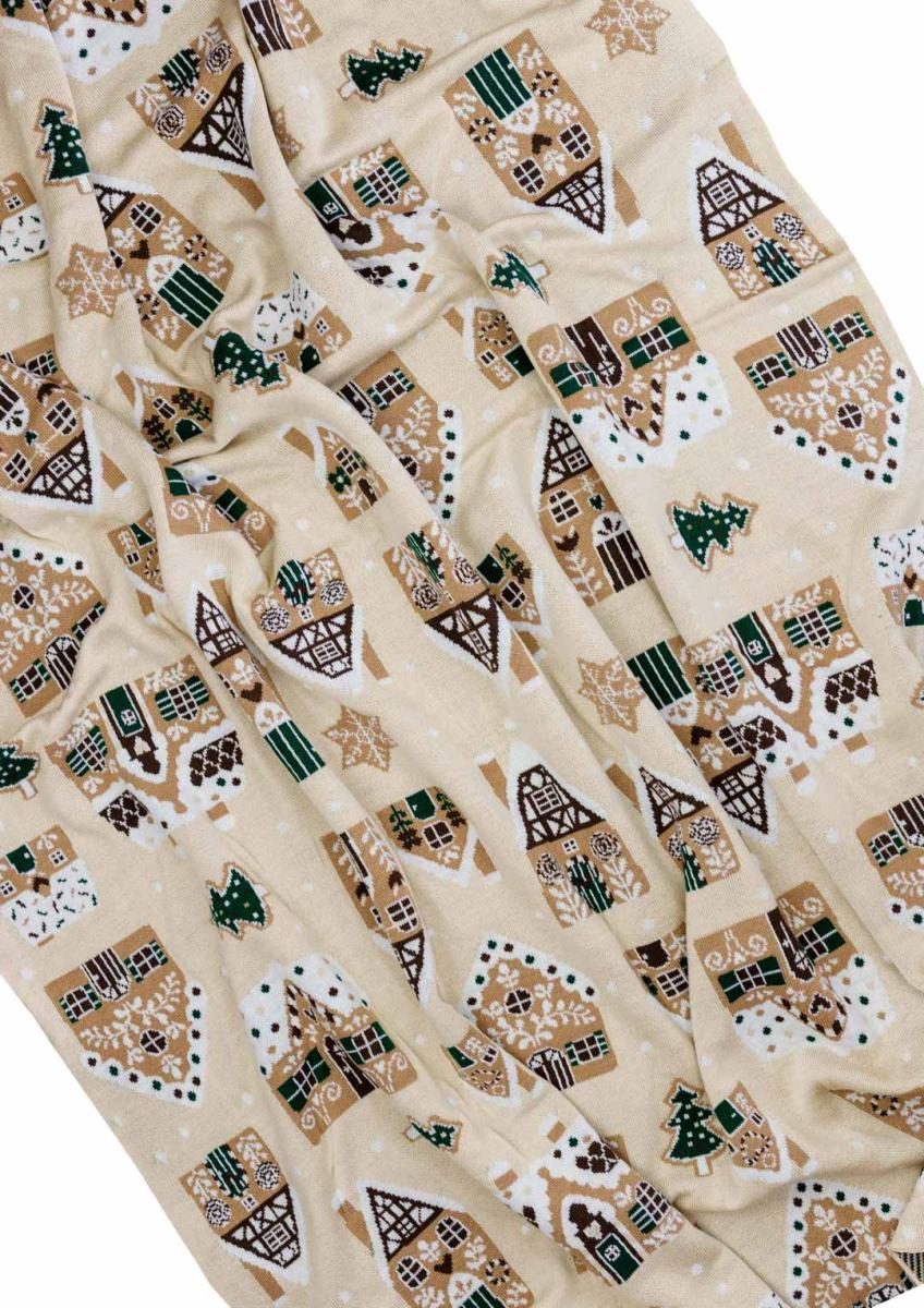 Новорічний плед в'язаний Імбирні будиночки