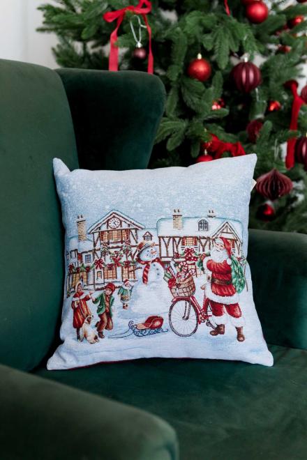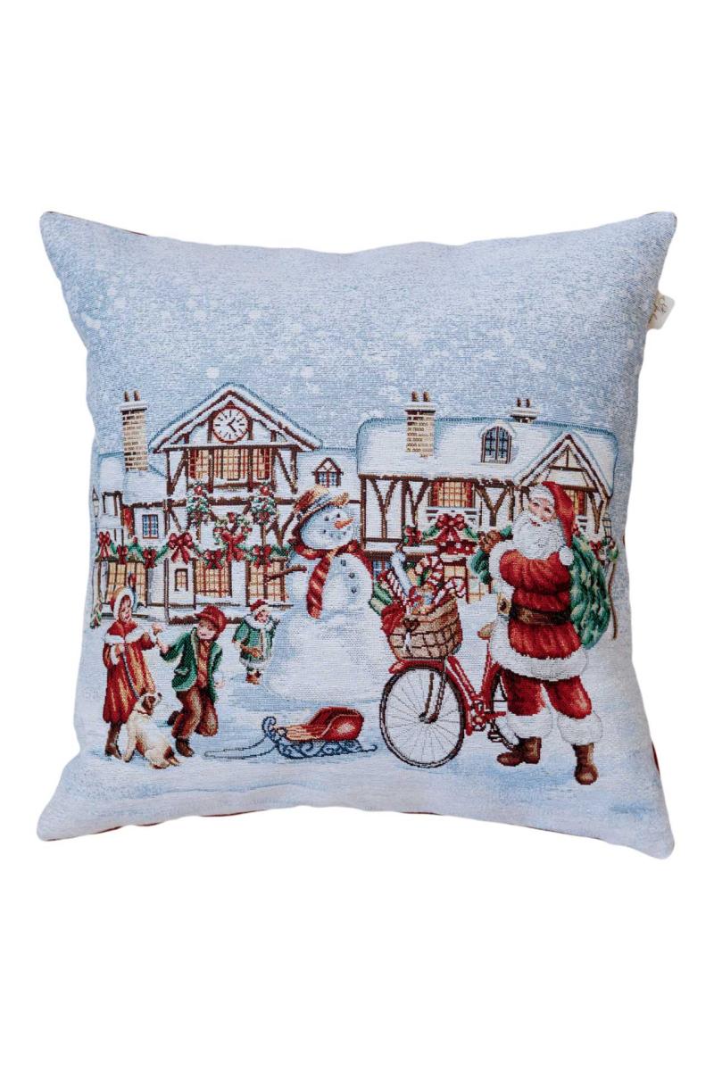 Декоративна подушка із іспанської тканини відмінної якості. Подушка на блискавці. З одного боку гобелен, з іншого боку тканина бавовняна однотонна. Це стильний подарунок сім'ї, друзям, родичам та колегам до чарівних новорічних свят.Також це чудове доповнення до скатертини, серветок, доріжок та наволочок з новорічної колекції Carousel