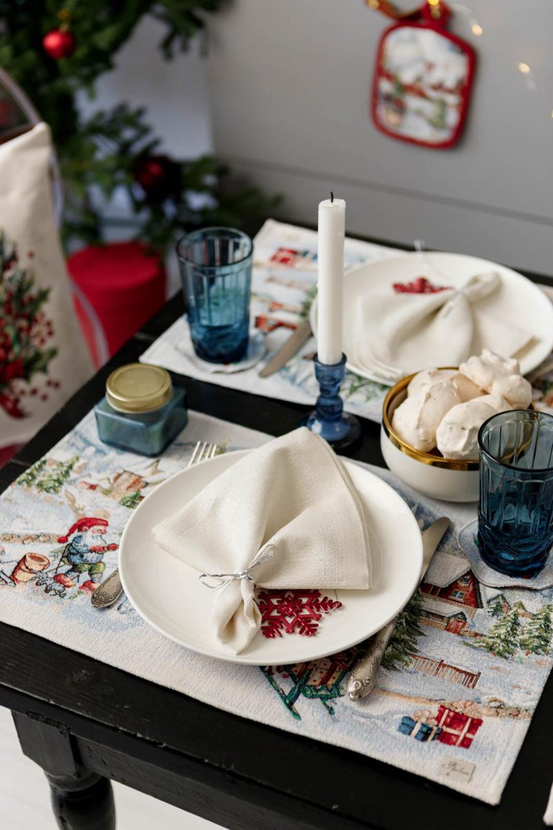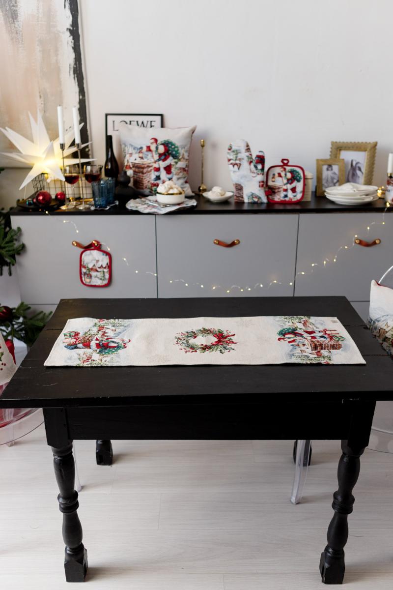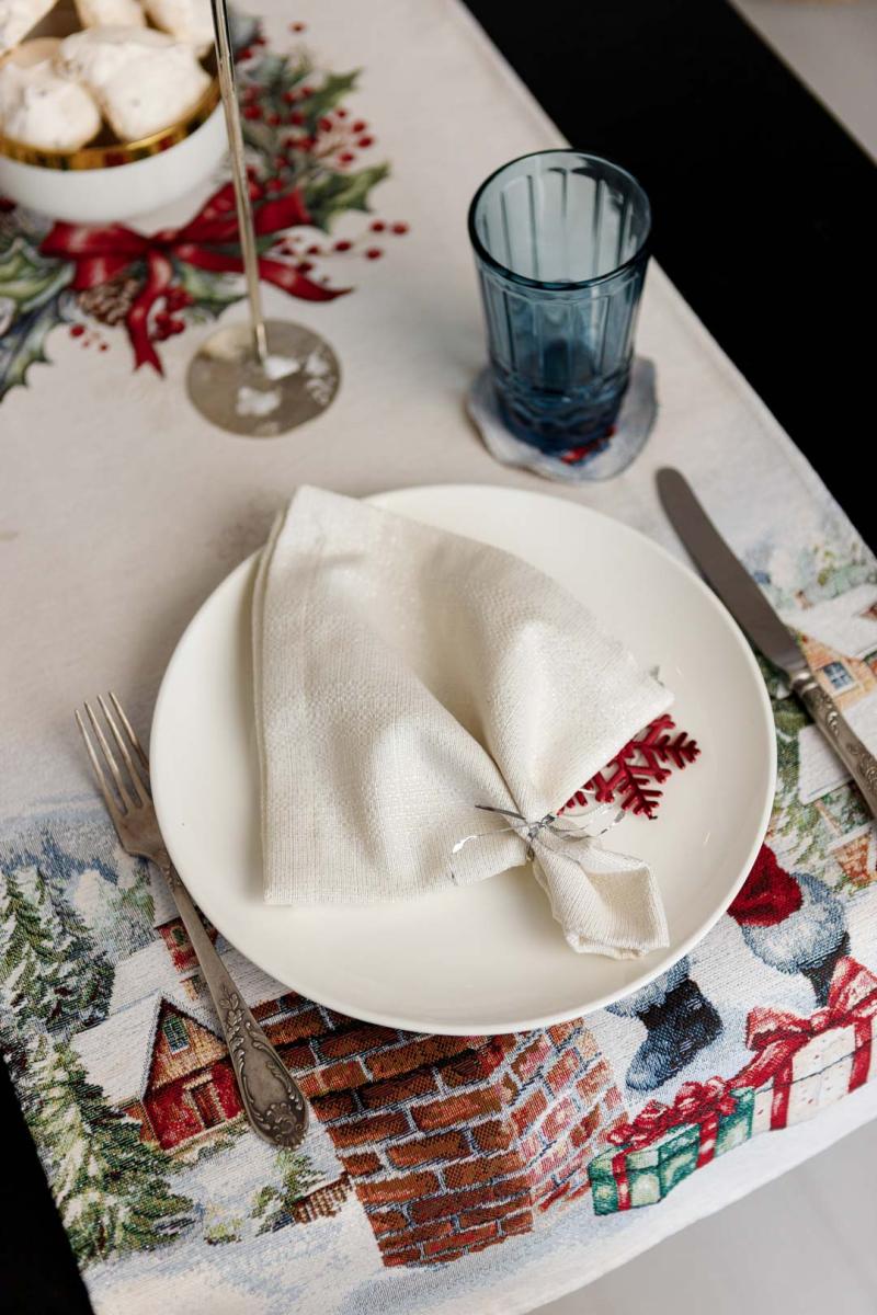 Доріжка на стіл із натуральної іспанської тканини з велюром, приємна на дотик! Це стильний подарунок сім'ї, друзям, родичам та колегам до чарівних новорічних свят. Також це чудове доповнення до скатертини, серветок, наволочок та подушок з новорічної колекції Снігова зима
