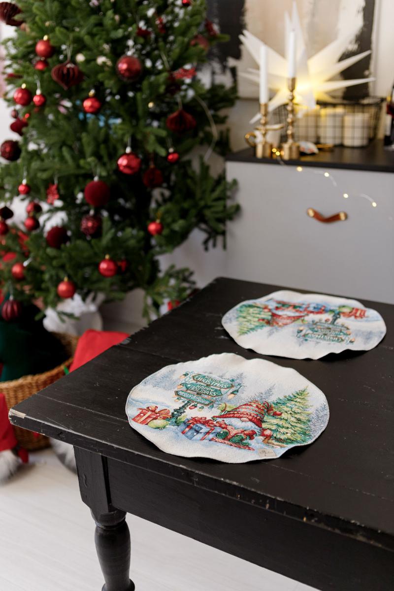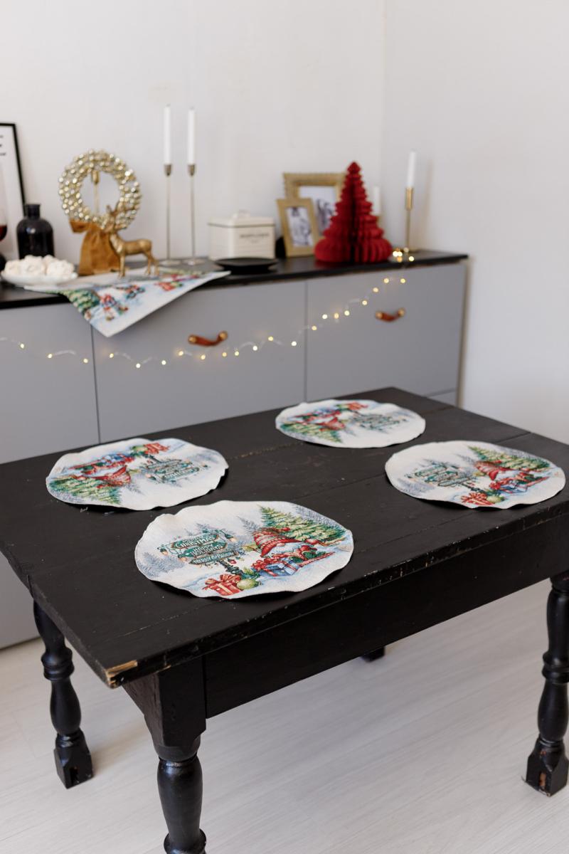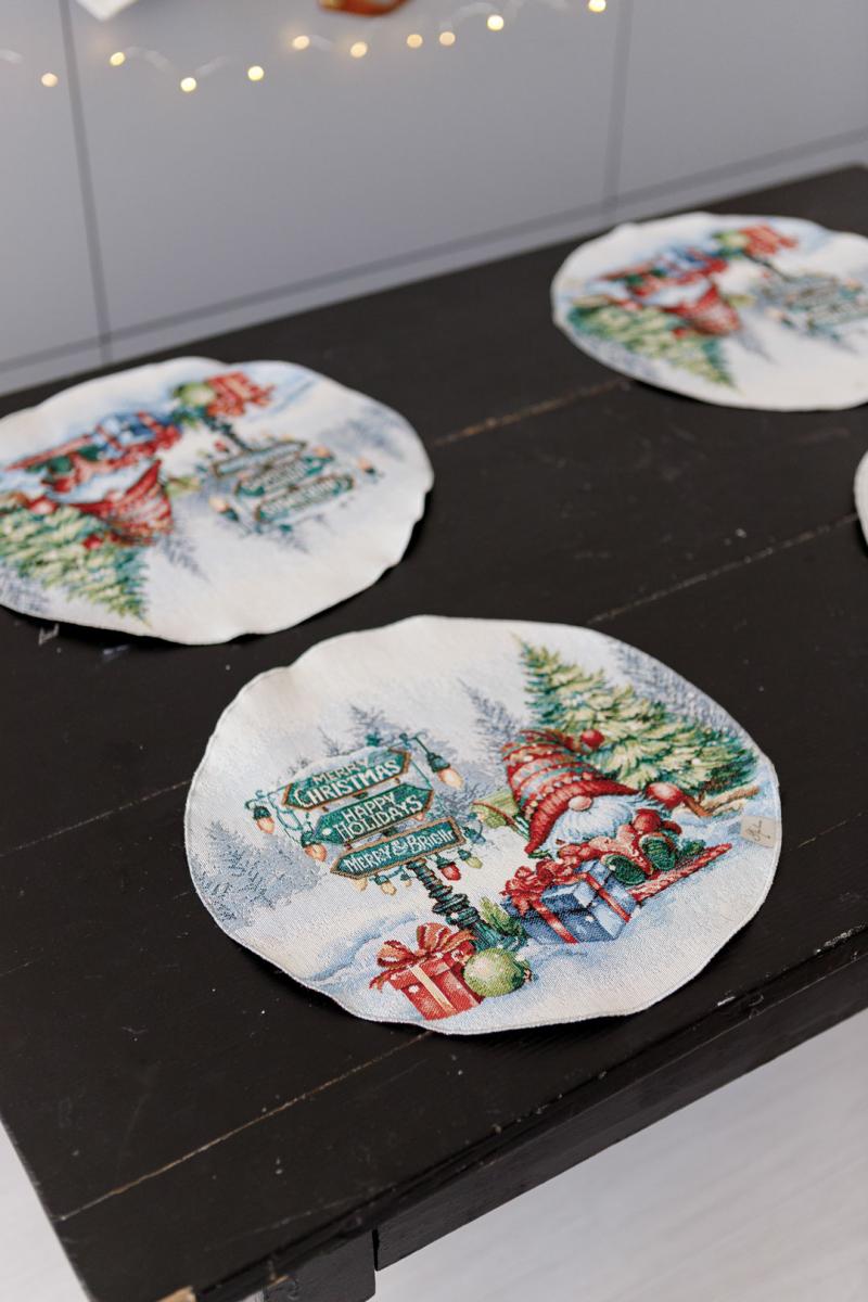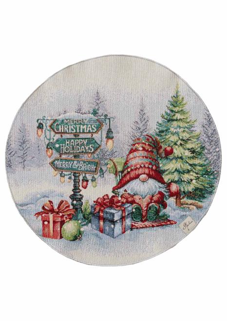 Купити круглу гобеленову новорічну серветку Різдвяне багаття