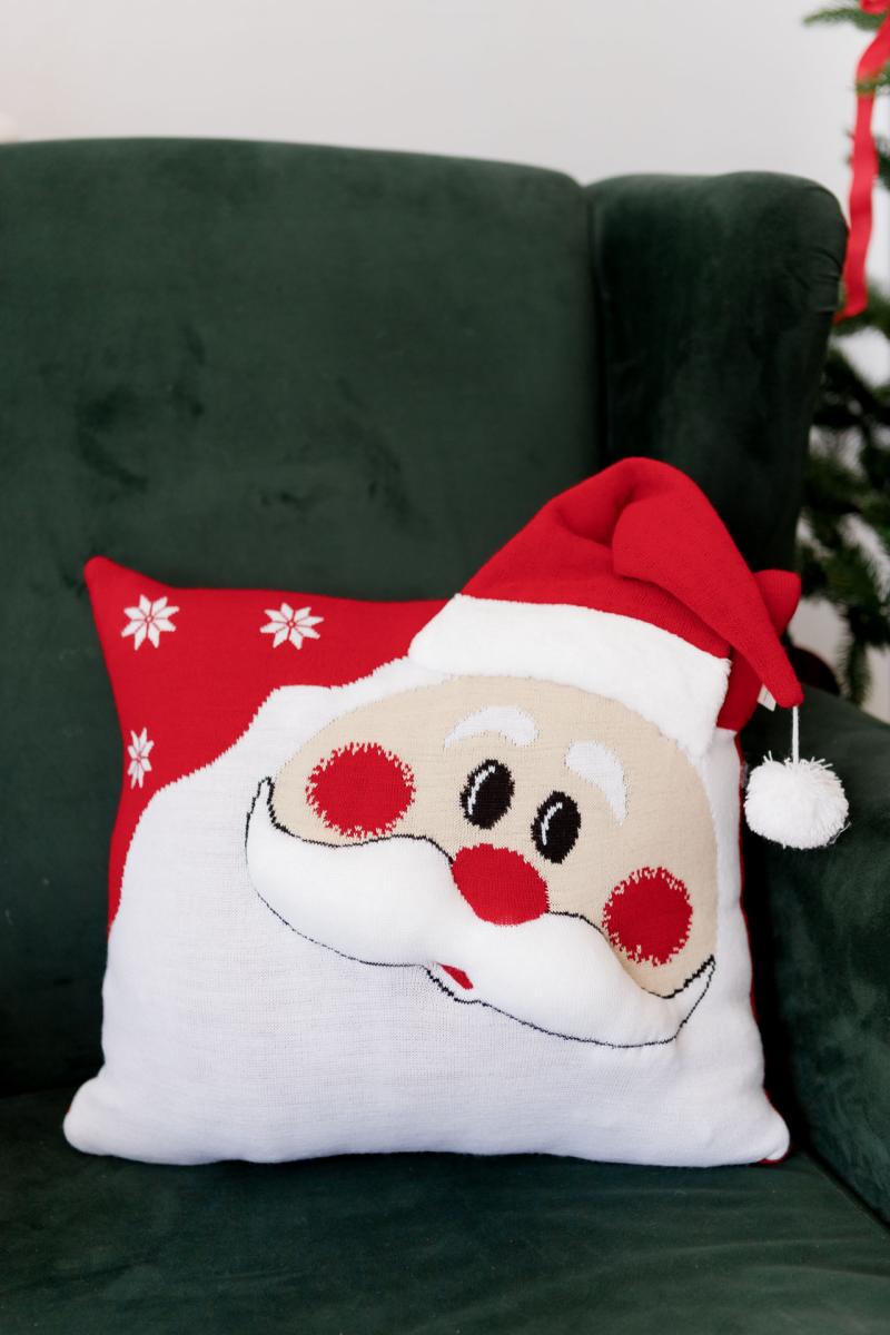 Новорічна наволочка декоративна в'язана Святий Миколай