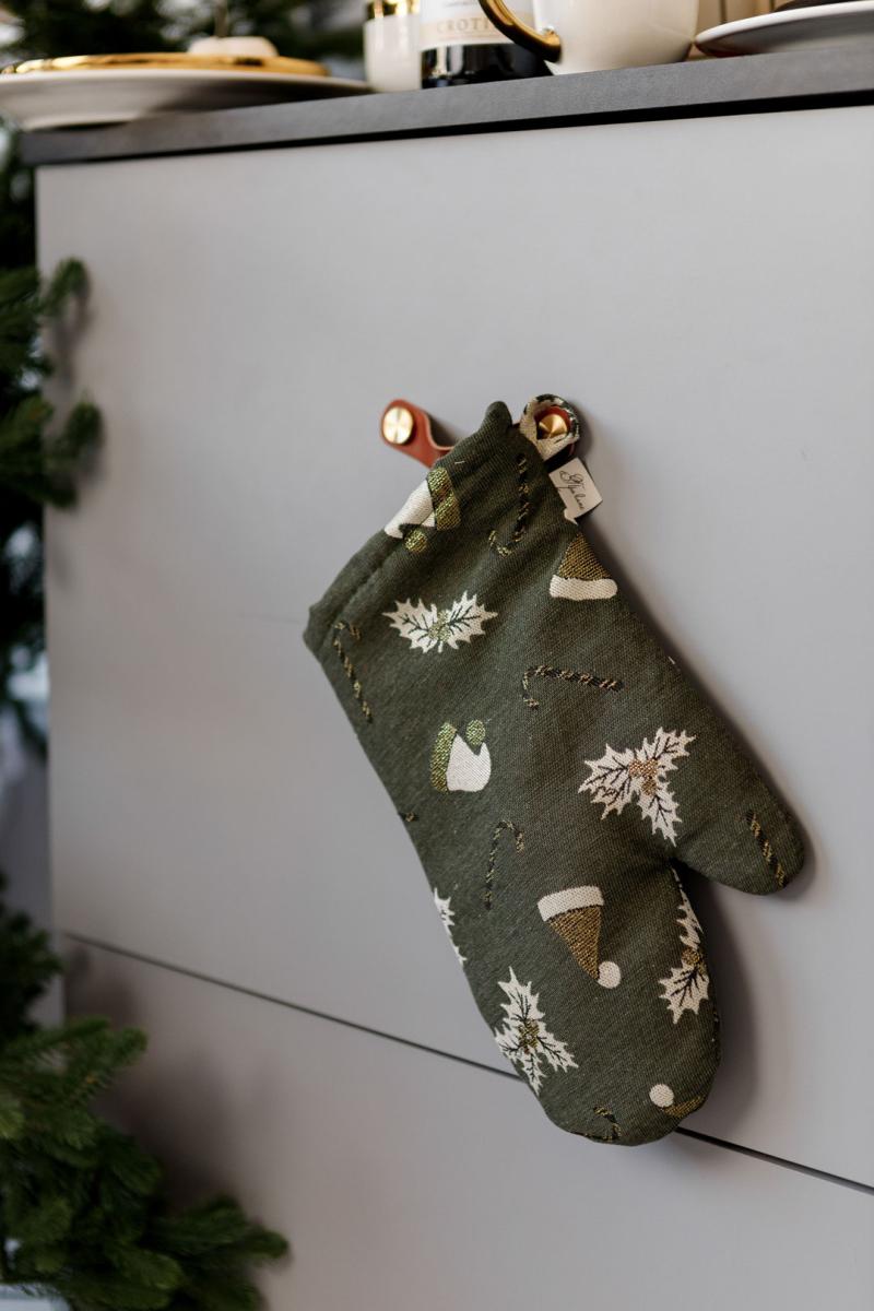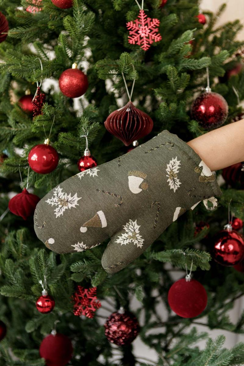 Замовити новорічну кухонну рукавицю Шапочки на зеленому