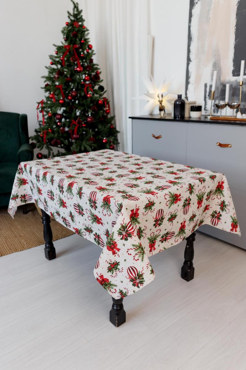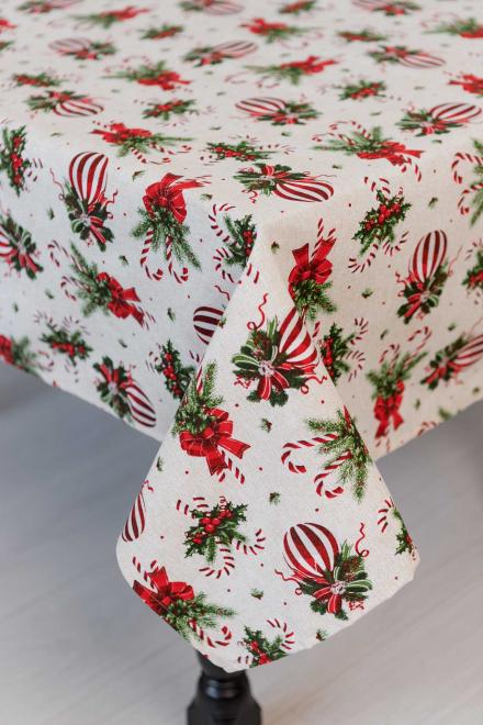 Новорічна скатертина на стіл Stripe Balls