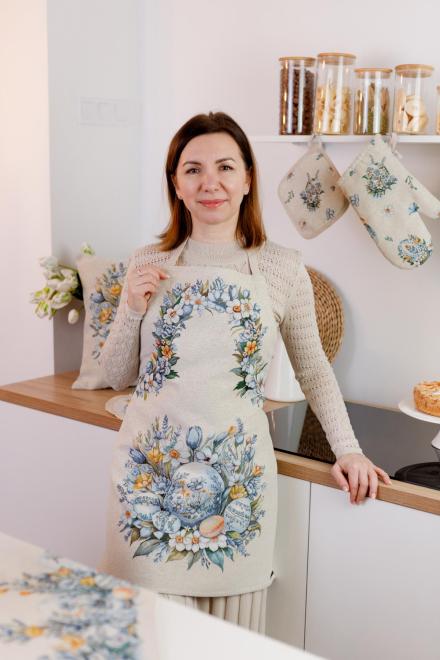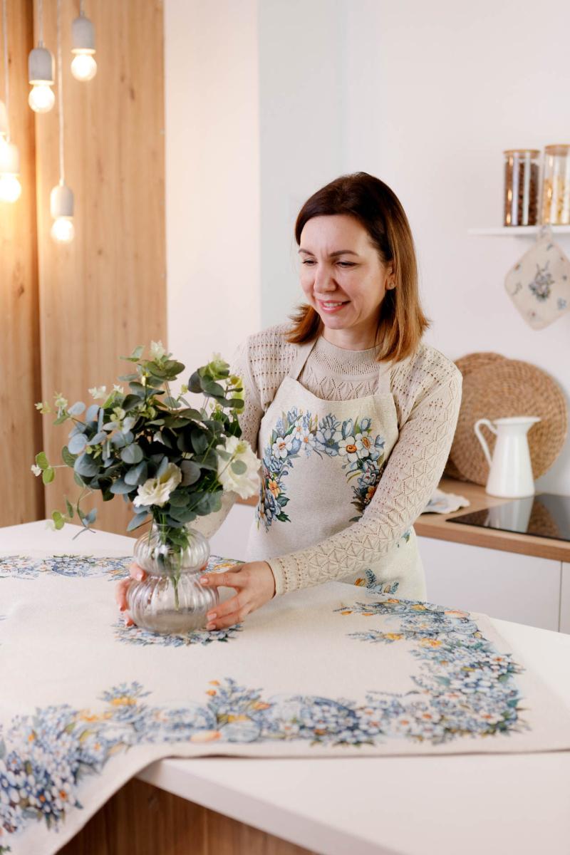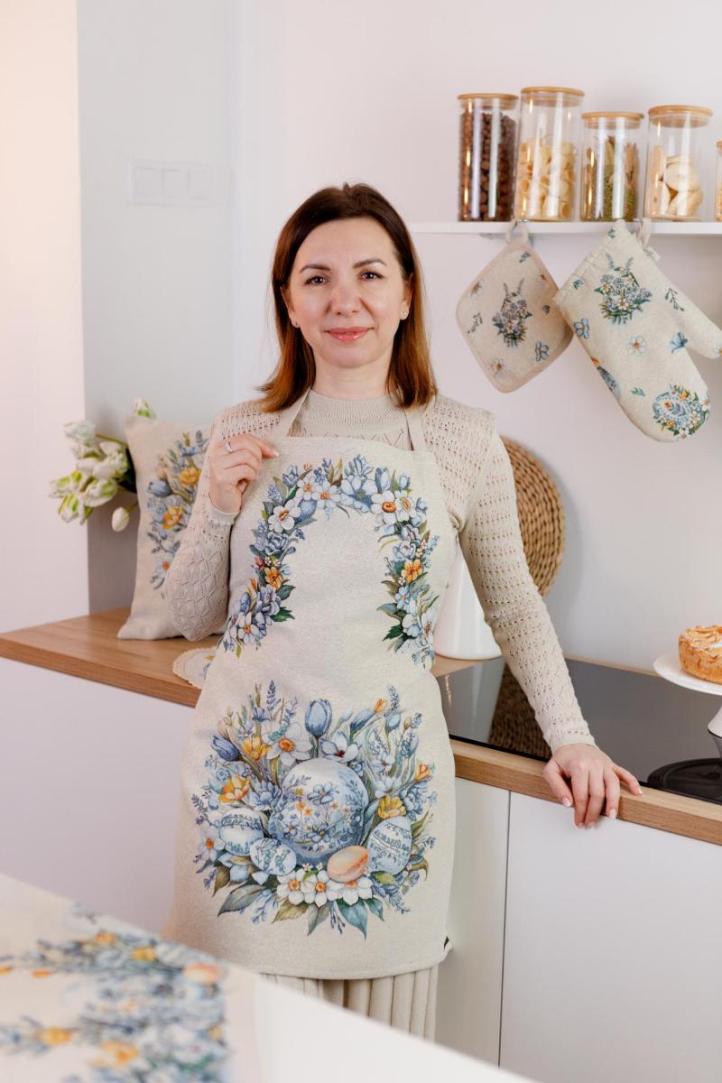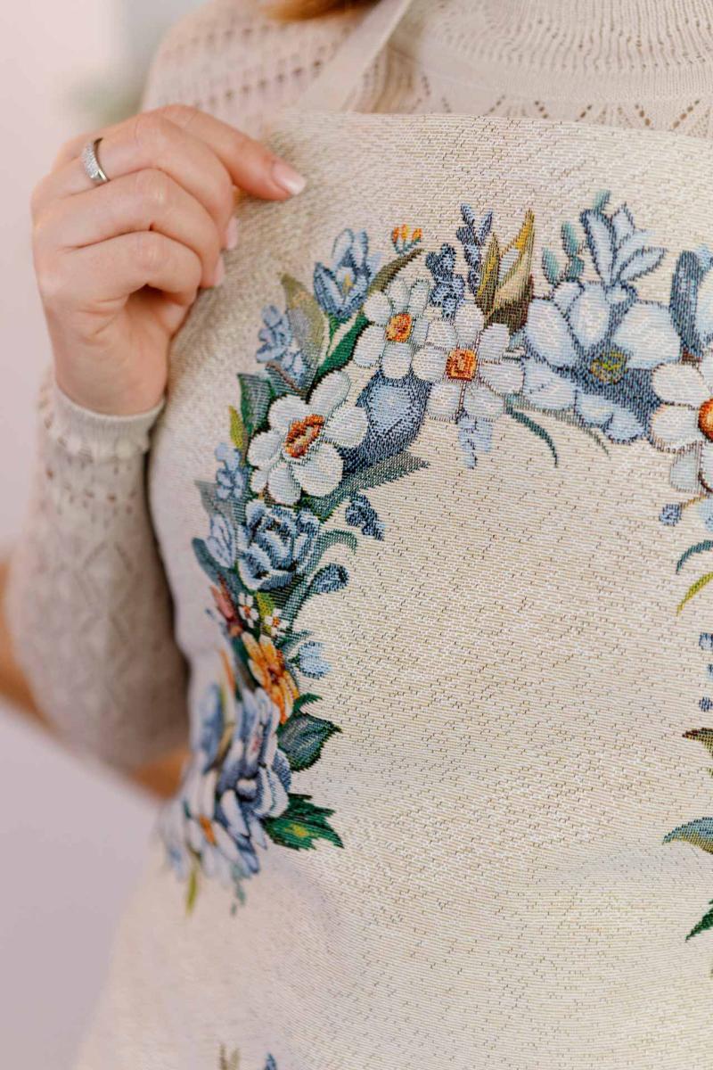 - Дизайн та декор фартухи: стилізовані під льон,з квітами,для жінок