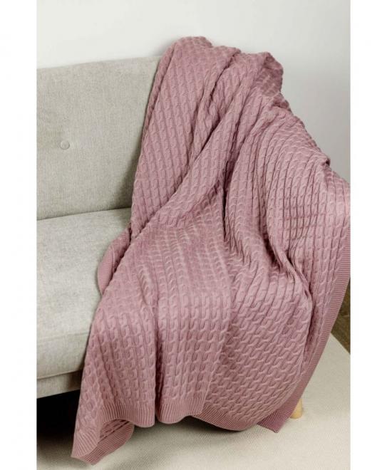 Плед в'язаний Коси рожевий