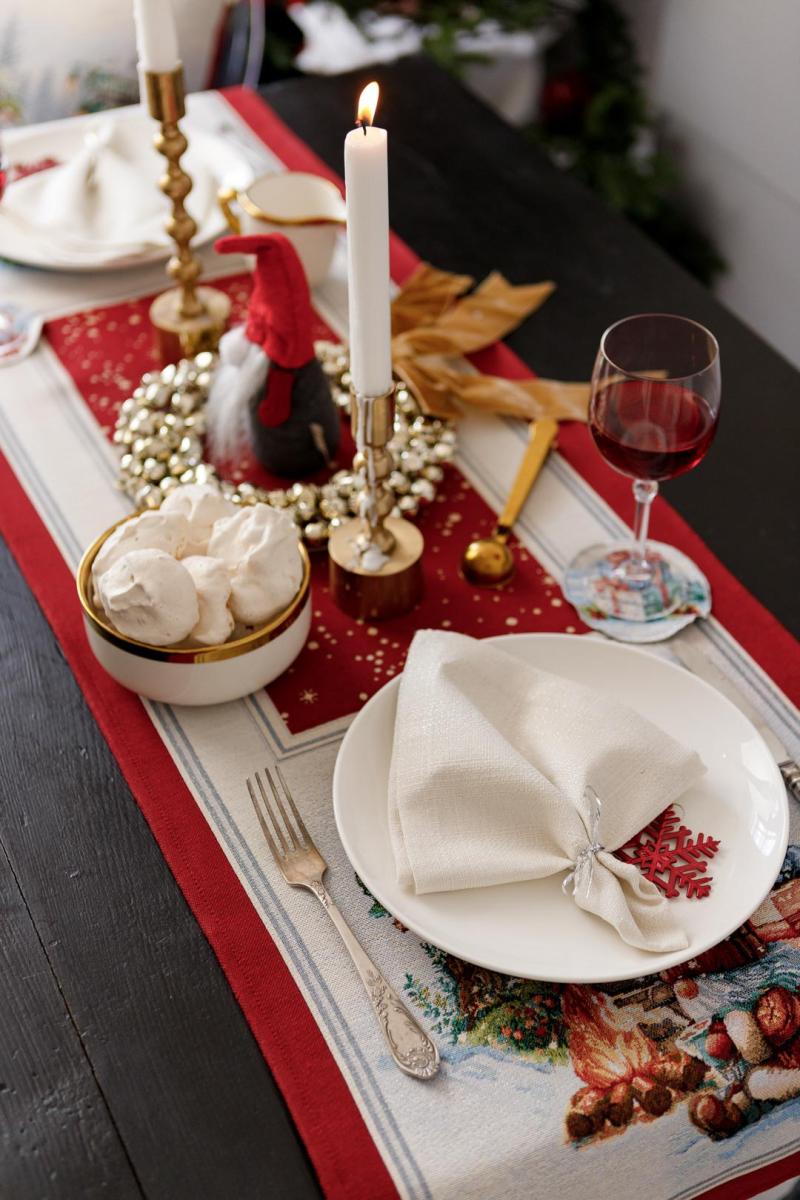 Доріжка на стіл із натуральної іспанської тканини приємна на дотик! Це стильний подарунок сім'ї, друзям, родичам та колегам до чарівних новорічних свят. Також це чудове доповнення до скатертини, серветок, наволочок та подушок з новорічної колекції Різдвяне багаття