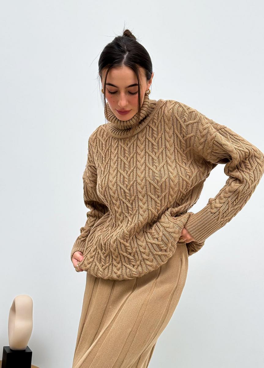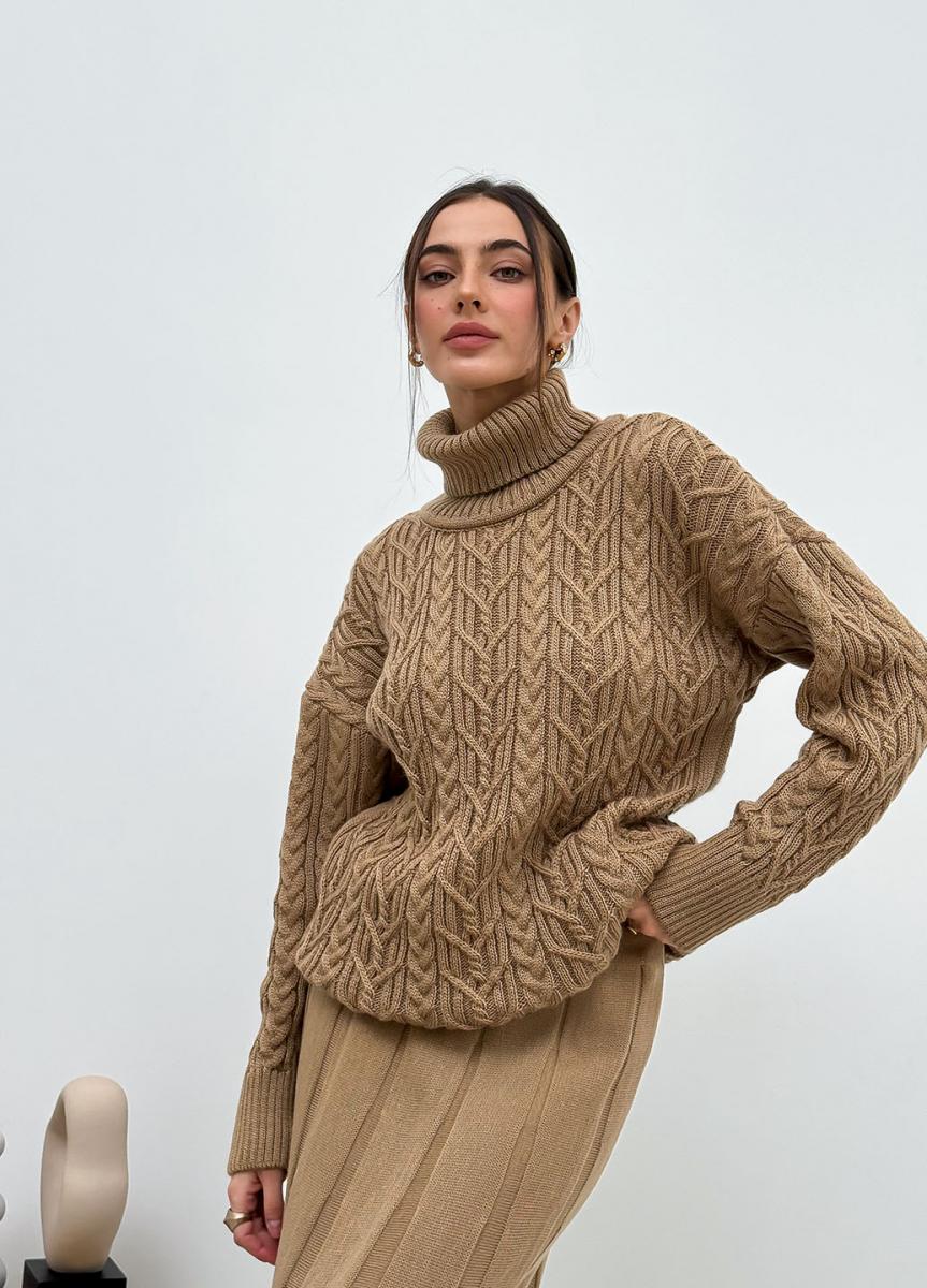 Жіночий в'язаний светр з горловиною дуже якісної в'язки, приємного до тіла. Практичний та лаконічний светр ідеально підійде для створення затишних образів