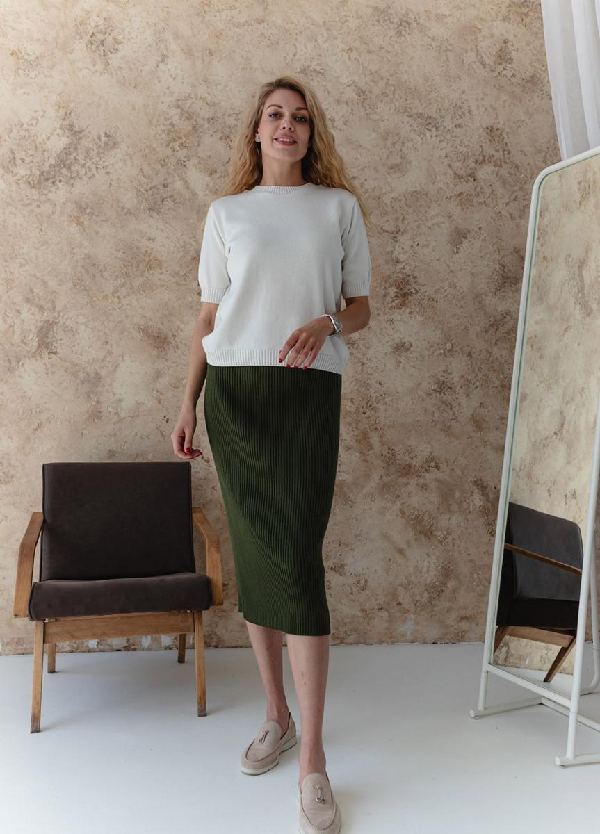 Жіноча спiдниця вільного крою машинної в'язки, дуже практична і не сковує рухів.