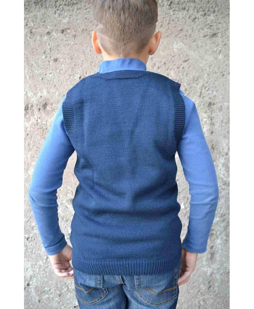 Купити в'язана дитяча жилетка для хлопчика темно-синя