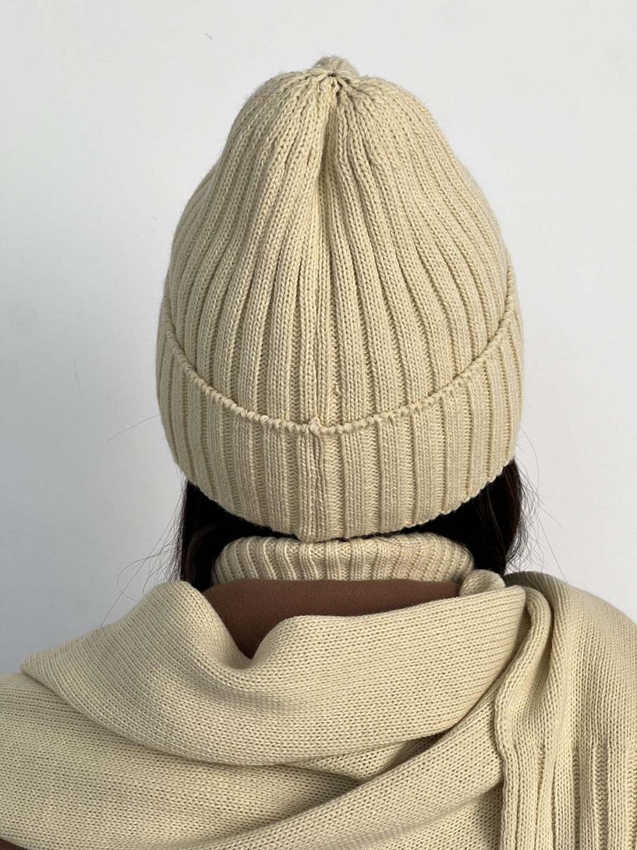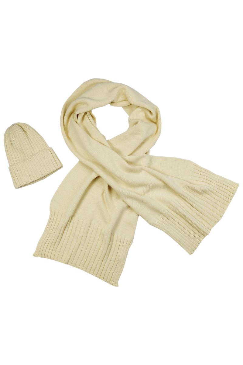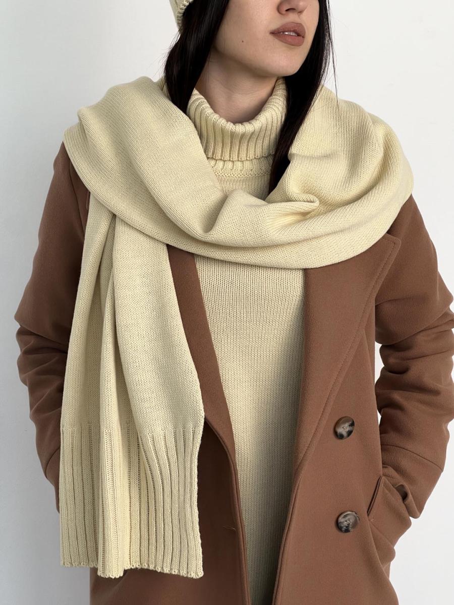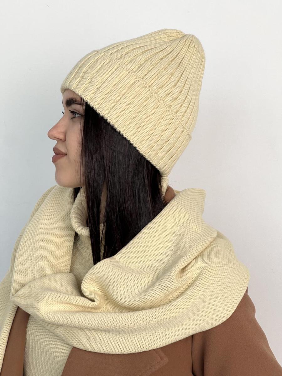 Купити в'язаний комплект жіночий шапка та шарф вершковий