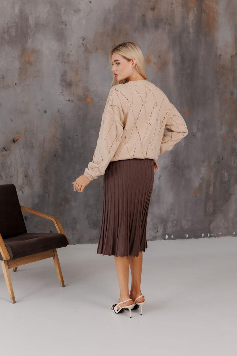 Спідниця плісе міді в'язана Шоколад